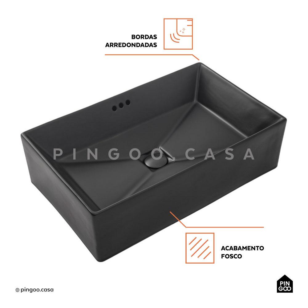 Cuba De Apoio Para Banheiro Retangular Slim Louça Cerâmica 60 cm Lolita Pingoo - Preto Fosco
