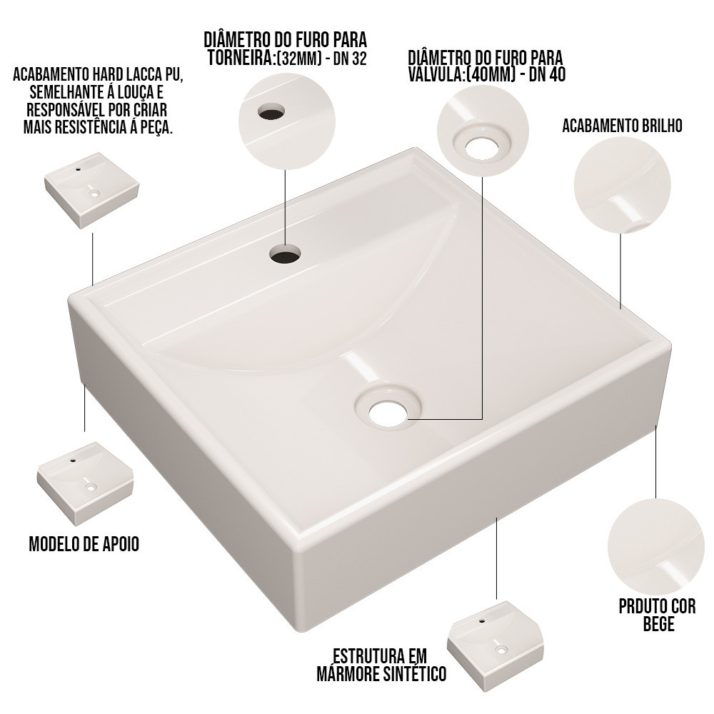 Cuba de Apoio Quadrada Para Banheiro Lavabo C01 Q39W Bege - Lyam Decor