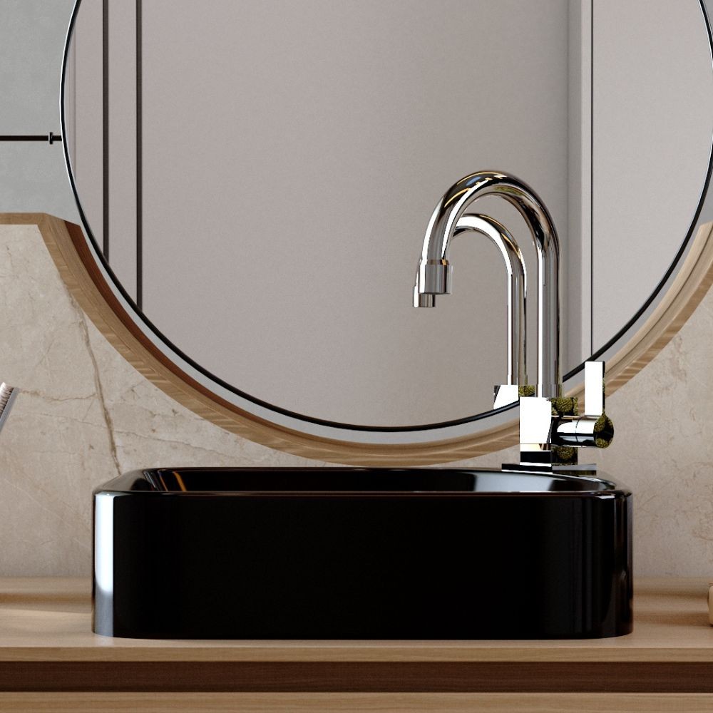 Cuba de Apoio Retangular Para Banheiro Lavabo Cross C01 RO36W Preto - Lyam
