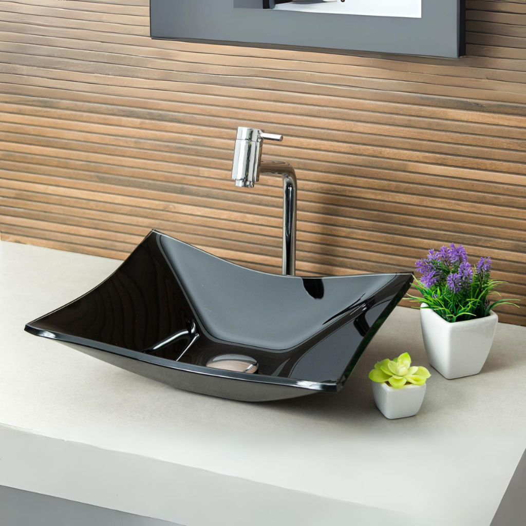 CUBA DE VIDRO RETANGULAR P/ BANHEIROS E LAVABOS 40X30- MODELO DE APOIO 8MM