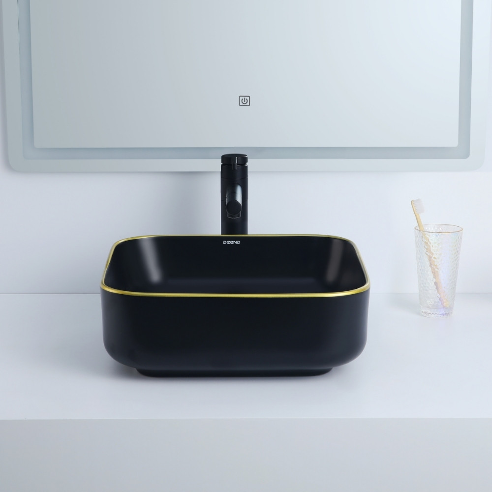 Cuba Deend De Cerâmica Quadrina NeroDorato Banheiro 39x39x14cm