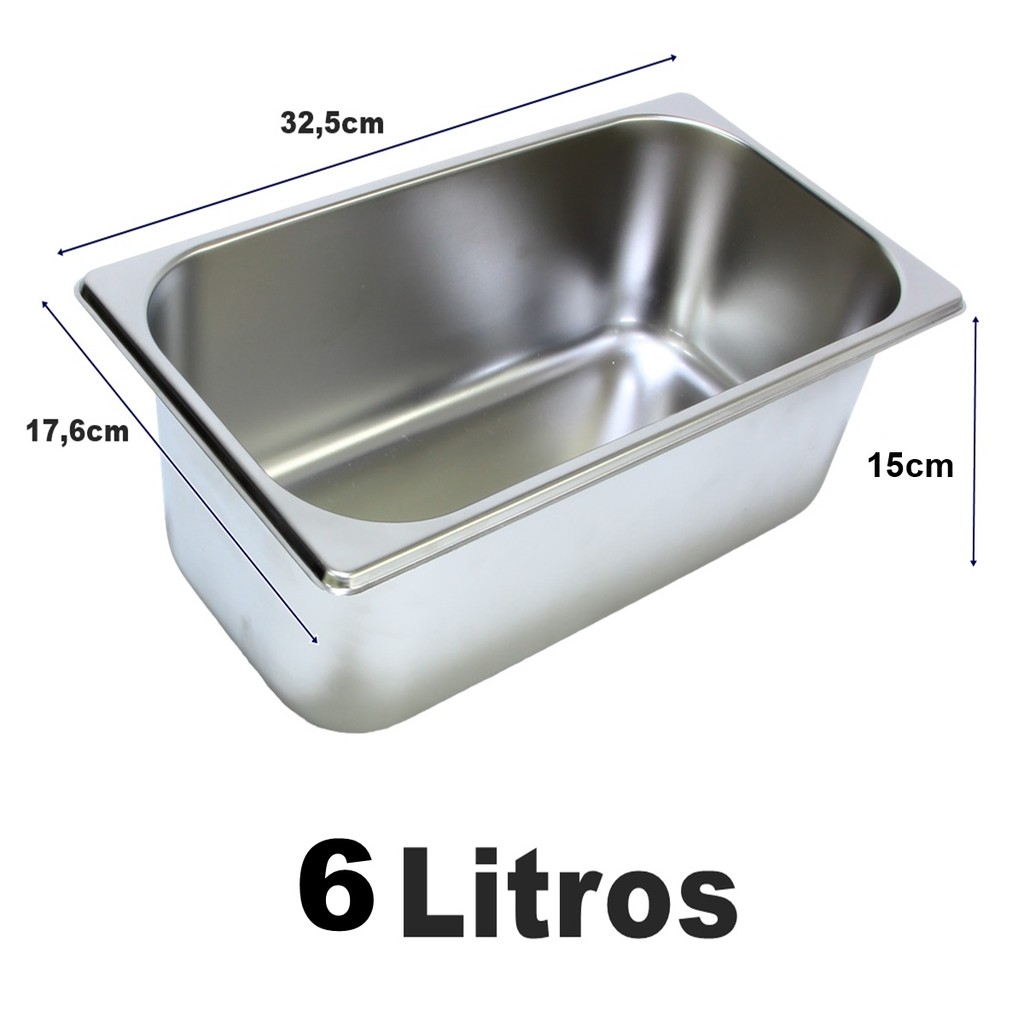 1 Cuba Gastronômica com tampa Inox Para Buffet 1/3 150mm Procura por uma cuba de alta qualidade e durabilidade? Então confira a cuba com tampa 1/3 x 150 mm em Aço Inoxidável. Ideal para a utilização em rechauds, buffets self service, carrinhos térmicos, restaurantes, hotéis, hamburguerias, pizzarias e refeitórios, conservando de maneira exemplar a temperatura dos alimentos. Esta cuba alia durabilidade e resistência, pois é inteiramente fabricada em aço inoxidável de fácil limpeza que além de resistente a choque térmicos e impactos, também é imune a corrosão. Conta com a excelente capacidade de 6 litros e segue o padrão GN de medidas 1/3x150. O produto segue normar internacionais para o uso em alimentos. Produto ideal para quem é exigente em relação à higiene dos alimentos, pois além de não reterem cheiro também não soltam resíduos. CARACTERÍSTICAS TÉCNICAS: Contem: 1 cuba com tampa 1/3x150 Material: Aço Inox Capacidade: 6 Litros Formato GN: 1/3 Altura: 15 cm Largura: 17,6 cm Comprimento: 32,5 cm Peso da cuba: 500 gramas Peso da tampa: 200 gramas Modelo: 1/3x150 Trabalhamos com diversos tamanho de cubas e tampas 1/1, 1/2, 1/3, 1/4, 1/6 e 1/9 com altura 2 a 20cm consulte nossos outros anuncios.