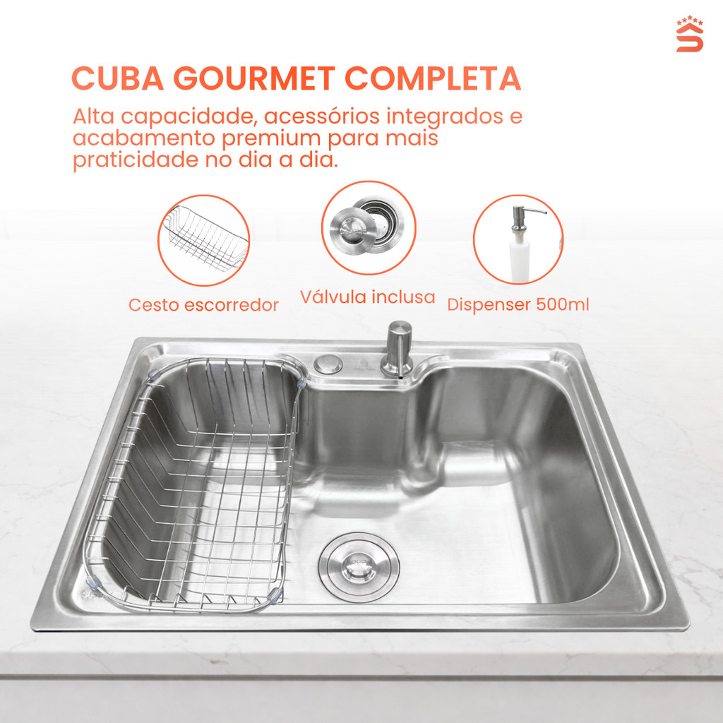 Cuba Gourmet Aço Inox 304 60x42cm Pia Cozinha Com Acessórios