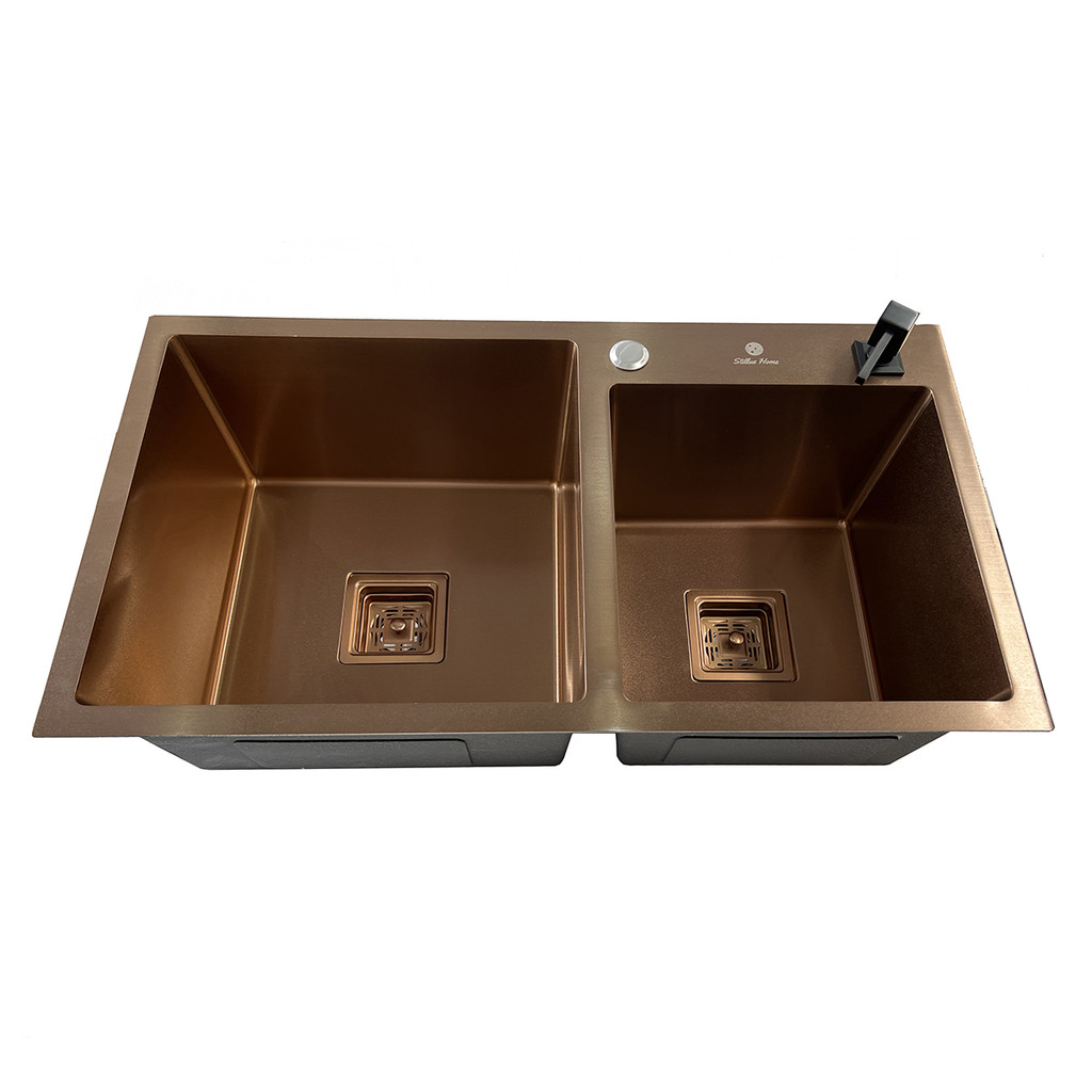 Cuba Gourmet Quadrada Aço Inox 304 Rosê Com Acessórios 78X43cm !!! Cuba Gourmet de Aço Inox ideal para quem busca sofisticação e praticidade!!!! Cuba produzida em aço inox 304 com 100% de pureza no material, com sistema anti-risco ou seja, não risca e não cria pontos de ferrugem com o passar do tempo, com 1,0mm de espessura, medindo 78x43x23cm. Acompanha válvula de 4 1/2" que possibilita a instalação de Triturador de Resíduos, Escorredor de Louça em Aço Inox e Dispenser de detergente em Aço Inox. Produto de altíssima qualidade e muita praticidade, equipada com sistema antirruído, evita que o fluxo de água ecoe na cuba diminuindo assim o barulho para seu maior conforto!!! Salienta-se sua beleza e estética com linhas modernas e acabamento em aço inox escovado acetinado ela é resistente e fácil de limpar, evitando a corrosão e conservando sua beleza por muito mais tempo! Especificações: Marca: STILLUS HOME Medidas externas: 78 X 43 X 23 cm Medidas internas: Cuba maior 38x38x20 cm Cuba menor 31x33x20 cm Material: Aço inoxidável 304 Espessura externa: 3 mm Espessura interna: 1 mm Acabamento: Aço Inox Rosê Aplicação: Embutir ou Sobrepor Furação da Torneira: 3,5 cm Furação do dosador: 2,8 cm Posição da Válvula: Centralizada Furação da Válvula: 4.1/2" Válvula Escape/Ladrão: Sim Capacidade do dispenser detergente: 500ml Indicação: Cozinha, Churrasqueira, Área Gourmet Aceita Triturador: Sim Anti-Ruído: Sim (Fundo e laterais) Acompanha Acessórios: Sim Acompanha Sifão: Sim Recomendações de Uso: Não usar ácido muriático, água sanitária ou qualquer outro solvente para lavar objetos na pia. Na reforma ou construção, proteger a pia para não deixar sobre a mesma pó de cimento ou gesso. Enxaguar e secar bem a peça após o uso. Nunca deixar objetos metálicos sobre a peça por períodos muito longos, para evitar a corrosão. Para manter o brilho da sua pia, recomendamos o uso da pasta para polir e remover manchas em superfícies de aço inoxidável. Itens inclusos: - 1 Cuba Gourmet Quadrada Aço Inox 304 Rosê 78x43cm - 1 Válvula de escoamento em aço inox 304 - 1 Válvula e tubulação do Sifão - 1 Cesto escorredor - 1 Dosador de detergente 500ml. Todos nossos produtos acompanham Nota Fiscal!!! Garantia 6 meses!!!