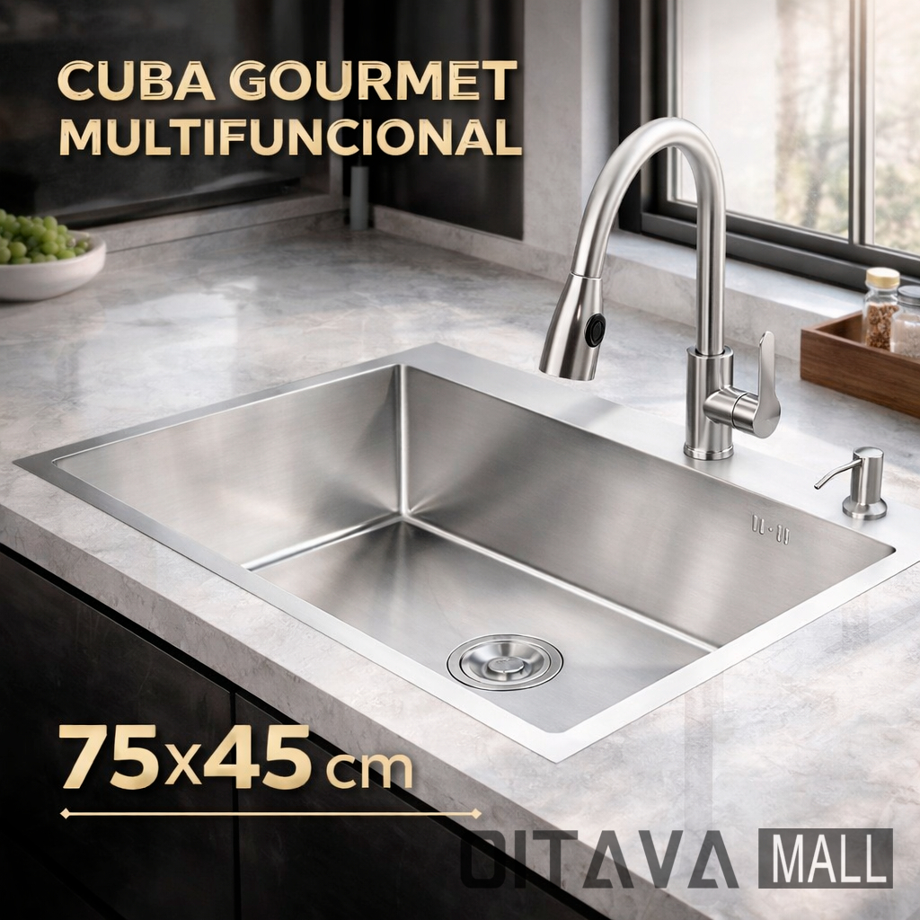 Cuba Gourmet Multifuncional Pia Aço 304 Inox Acessórios 75x45cm