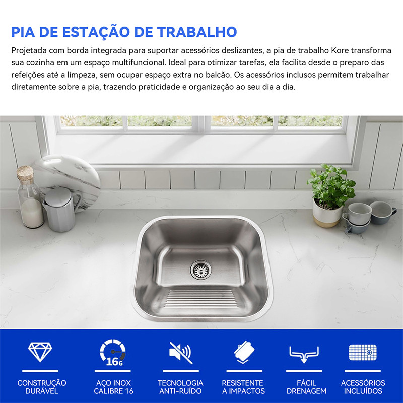 Cuba Inox Tanque de Lavanderia Profundo Anti Ruído Com Kit Completo 43x37 / 44x44 / 55x45 CM