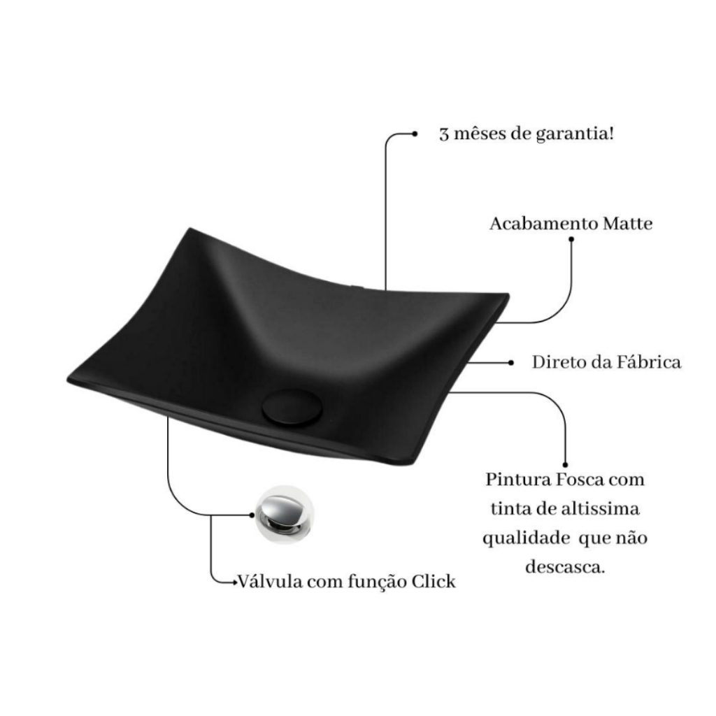 CUBA RETANGULAR Altura : 11cm Comprimento : 40cm Largura: 30cm Espessura : 8mm Material : Vidro Modelo: Apoio Furo Saida De Agua : 4cm Formato : Retangular VÁLVULA CLICK: A Válvula Click é a mais nova tendência do mercado de decoração e acabamento para o seu banheiro, ideal para quem procura praticidade e eficiência. Com sua função click. Com ela, você controla o escoamento da água de maneira simples e prática. Com seu design sofisticado, a válvula é o produto que vai dar o complemento ideal para o seu banheiro, além de evitar a saída de odores e insetos, mantendo seu banheiro limpo. *Sem ladrão* Medidas: Conexão: 7/8'' polegadas Diâmetro: 32mm Altura: 10 cm Material: Polipropileno Industrial Marca: Importada Garantia: 3 meses SERVE EM TODAS AS CUBAS DE LOUÇA E VIDRO. NÃO SERVE EM CUBAS DE MÁRMORE SINTÉTICO (devido ao tamanho do furo) A ROCCO: Especialista em e-commerce, com mais de 10 anos de experiência na área. Localizada em Minas Gerais. Atua na comercialização de Cubas, Torneiras, Válvulas, Ralos e Duchas de alto padrão e fino acabamento, sempre com produtos selecionados que seguem tendências de design mundial, proporcionando o toque especial que seu projeto precisa. NOSSA EMBALAGEM: Nossos produtos são cuidadosamente embalados pela nossa equipe, com materiais protetores e embalagens de papelão reforçado. Para que não haja nenhuma danificação no transporte e solicitamos o maior cuidado possível no manuseio para que o produto chegue perfeito ao seu endereço!!!