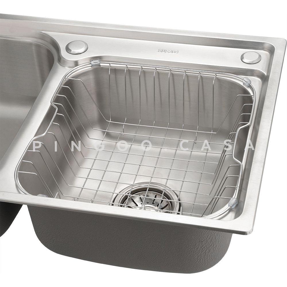 Cuba para cozinha pia dupla gourmet inox Potiguara com lixeira e acessórios Pingoo