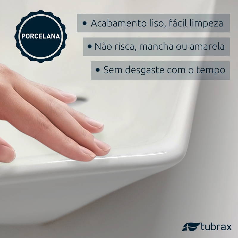 Cuba de porcelana BAB0021 A cuba Tubrax é produzida em porcelana cerâmica de alta qualidade. Não perde o brilho e não sofre amarelamento com o tempo. Acabamento excelente! Além do design sofisticado, a cuba Tubrax possui um acabamento perfeito. Quanto à instalação e à torneira recomendada, o modelo é projetado para ser sobreposto ao móvel, oferecendo facilidade e praticidade durante a instalação. Recomendamos combinar esse modelo de cuba com uma torneira de bica alta. A cuba de porcelana Tubrax BAB0021, pode ser combinada com o Vaso Sanitário Monobloco Cerâmica Modelo Diamante - VAB0005 Tubrax, deixando seu banheiro super moderno. Obs: Leves alterações na coloração e acabamento podem acontecer entre diferentes lotes do produto. ESPECIFICAÇÕES TÉCNICAS: - Marca: Tubrax - Referência do Modelo: BAB0021 - Utilização: Apoio - Material: Porcelana Cerâmica - Acabamento: Esmalte branco brilhante - Itens Inclusos: 1 Cuba de porcelana - Válvula compatível: 1 1/4 polegadas (não inclusa) - Dimensão (C x L x A): 63 cm x 41 cm x 13 cm (dimensões externas) - Profundidade interna: 11 cm - Garantia: 12 meses contra qualquer defeito de fabricação - Distribuição: TBX Indústria, Importação e Comércio Ltda - Peso bruto (com embalagem): 8,278 Kg - Peso líquido (sem embalagem): 1,692 Kg