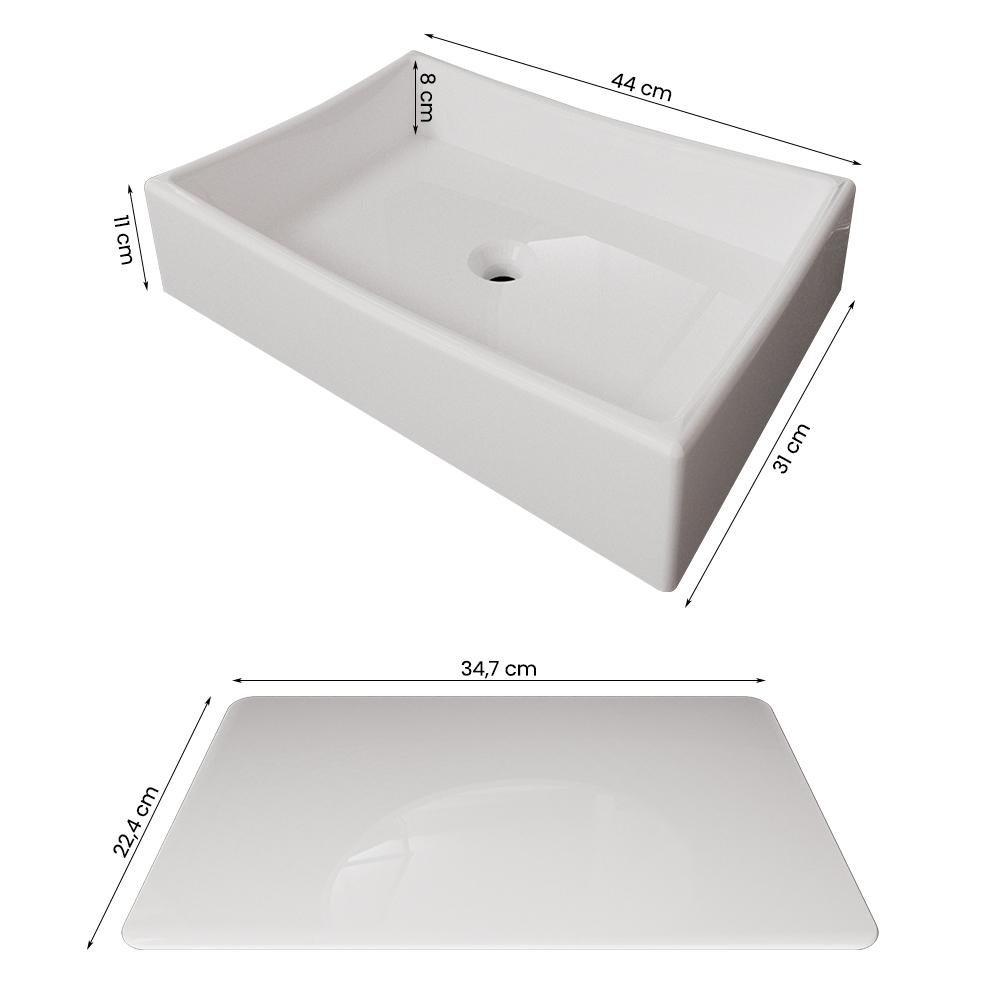 O conjunto Cuba Dalla com Valvula Oculta é um item essencial para qualquer banheiro moderno. Com seu design elegante e minimalista, esta cuba é perfeita para adicionar um toque de sofisticação ao seu espaço. Combinando funcionalidade e estilo, esta cuba é a escolha perfeita para transformar o seu banheiro em um ambiente elegante e funcional. Modelo: Cuba Dalla com Válvula Oculta; - Cuba: Altura: 11 cm; Largura: 31 cm; Comprimento: 44 cm; Profundidade: 8 cm; Tipo: de sobrepor; - Tampo para ocultar a válvula: Espessura: 3 mm; Largura: 22,4 cm; Comprimento: 34,7 cm; Material: Mármore Sintético; Forma: Retangular; Inclui Válvula: Sim; Modelo da Válvula: ABS; Acabamento: Cromado; Material: ABS; Fixação: Rosca Rosca: 7/8” Inclui torneira: Não; Embalagem do envio: Isopor, papelão e plástico. Informações adicionais: - Os objetos que ambientam as fotos não acompanham o produto; - É de inteira responsabilidade do cliente a montagem do produto e/ou instalação, assim como possíveis irregularidades provenientes de manuseio inadequado; - Embora o produto acompanhe o manual de montagem, verifique a complexidade antes de decidir montá-lo sozinho, recomendamos que contrate um profissional de sua confiança; - Fique atento, nossas cores podem sofrer alterações dependendo do seu monitor; - ANTES DE MONTAR O SEU PRODUTO, verifique se há alguma peça danificada, caso esteja, prestaremos a devida assistência dentro do prazo da garantia.