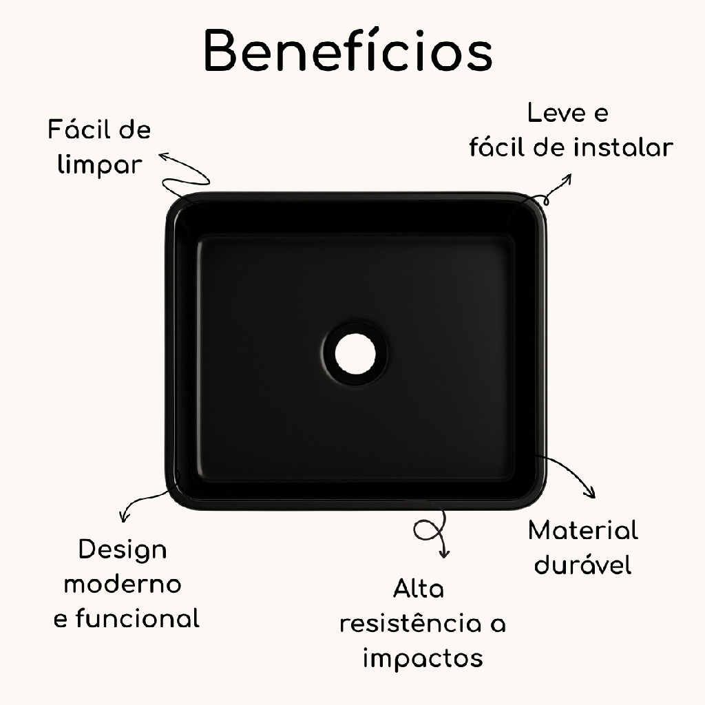 Cuba Pia De Apoio Sobrepor Banheiro Lavabo Quadrada Preta 30x25