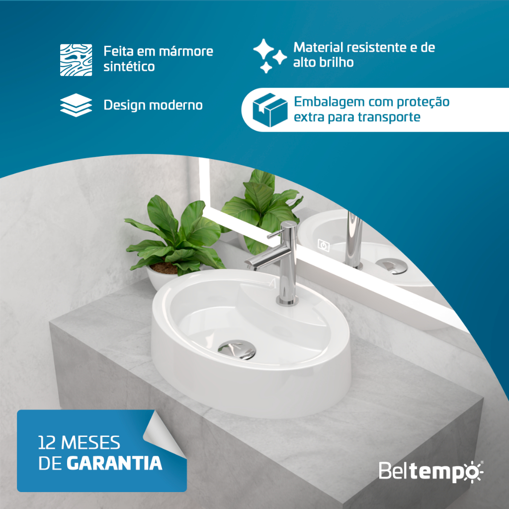 Cuba Pia de Apoio Sobrepor Oval 44x34 Branca Banheiro Lavabo Beltempo BT-2074 Apresentamos a Cuba BT-2074: Design Moderno e Durabilidade para o Seu Banheiro Descubra a Cuba BT-2074 da Beltempo, a escolha perfeita para quem busca transformar o banheiro com design moderno e um visual que valoriza o espaço. Fabricada em mármore sintético de alta durabilidade e com acabamento brilhante, esta cuba de apoio não só encanta pela beleza, mas também garante funcionalidade e facilidade no dia a dia. Com excelente escoamento de água, seu formato é ideal para uma limpeza prática e uma instalação sem complicações. Adquira um produto de excelência da Beltempo, uma marca com 30 anos inovando com qualidade, que oferece garantia e suporte pós-venda dedicado para sua total tranquilidade. DIFERENCIAIS - Feito em mármore sintético - Material resistente e de alto brilho - Design moderno - Embalagem com proteção extra para transporte - Fácil limpeza - Garantia de 12 meses INFORMAÇÕES TÉCNICAS - Modelo: Jade BT-2074 - Formato: Oval - Tipo de cuba: Apoio - Material: Mármore sintético - Revestimento: Polido - Acabamento: Hard Lacca Pu - Acabamento brilhante: Gel Coat - Cor: Branca DIMENSÕES - Altura: 8 cm - Largura: 34 cm - Comprimento: 44 cm - Profundidade: 5,5 cm - Furação da torneira: 3 cm (Compatível com torneiras 3/4) - Furação da válvula: 3,5 cm (Compatível com válvulas 7/8) - Peso: 4,35 kg Esse anúncio é somente da cuba de mármore sintético. NÃO acompanha torneira e válvula.