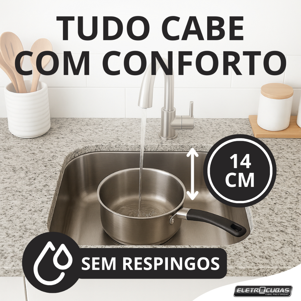 A Cuba de Inox N° 0 40x34x14cm da Eletrocubas é a escolha ideal para quem busca funcionalidade e elegância na cozinha. Com um acabamento em alto brilho, este modelo de aço inoxidável 430 não só proporciona durabilidade, mas também um toque sofisticado ao ambiente. Com dimensões compactas de 40 cm de comprimento, 34 cm de largura e 14 cm de profundidade, é perfeita para bancadas de cozinha, área de serviço e área gourmet, otimizando o espaço sem comprometer a estética. O design de embutir permite uma instalação discreta, ideal para quem valoriza a harmonia no layout da cozinha. Este produto é uma excelente adição para quem está em processo de construção ou reforma, oferecendo qualidade e estilo em um único item. A espessura de 0,5 mm assegura resistência, tornando-a uma escolha confiável para o dia a dia. Características técnicas: - Marca: Eletrocubas - Material: Aço inoxidável 430 - Acabamento: Alto Brilho - Instalação: Embutir - Medidas Internas: 40x34x14cm - Medidas Externas: 44x38x14cm - Espessura: 0,5mm - Acompanha Acessórios: Sim - Indicação de uso: Cozinha, Área Gourmet, Área de Serviço - Recomendada para Áreas Litorâneas: Não Vantagens: - Resistente à Corrosão e Ferrugem - Acompanha 1 Válvula 3 1/2 e 1 Sifão Sanfonado - Superfície Lisa e Sem Soldas Visíveis - Fácil Higienização e Manutenção - Alta Durabilidade - Custo-benefício - Fácil Instalação - Acabamento e Design Sofisticado Recomendações de Uso: - Não usar ácido muriático, água sanitária ou qualquer outro solvente para lavar objetos na pia. - Na reforma ou construção, proteger a pia para não deixar sobre a mesma pó de cimento ou gesso. - Enxaguar e secar bem a peça após o uso. - Nunca deixar objetos metálicos sobre a peça por períodos muito longos, para evitar a corrosão. - Para manter o brilho da sua pia, recomendamos o uso da pasta para polir e remover manchas em superfícies de aço inoxidável. - Não recomendada para áreas litorâneas. Itens Inclusos: - 1 Cuba de Aço Inox 430 N° 0 40x34x14cm - 1 Válvula 3 1/2 - 1 Sifão Sanfonado