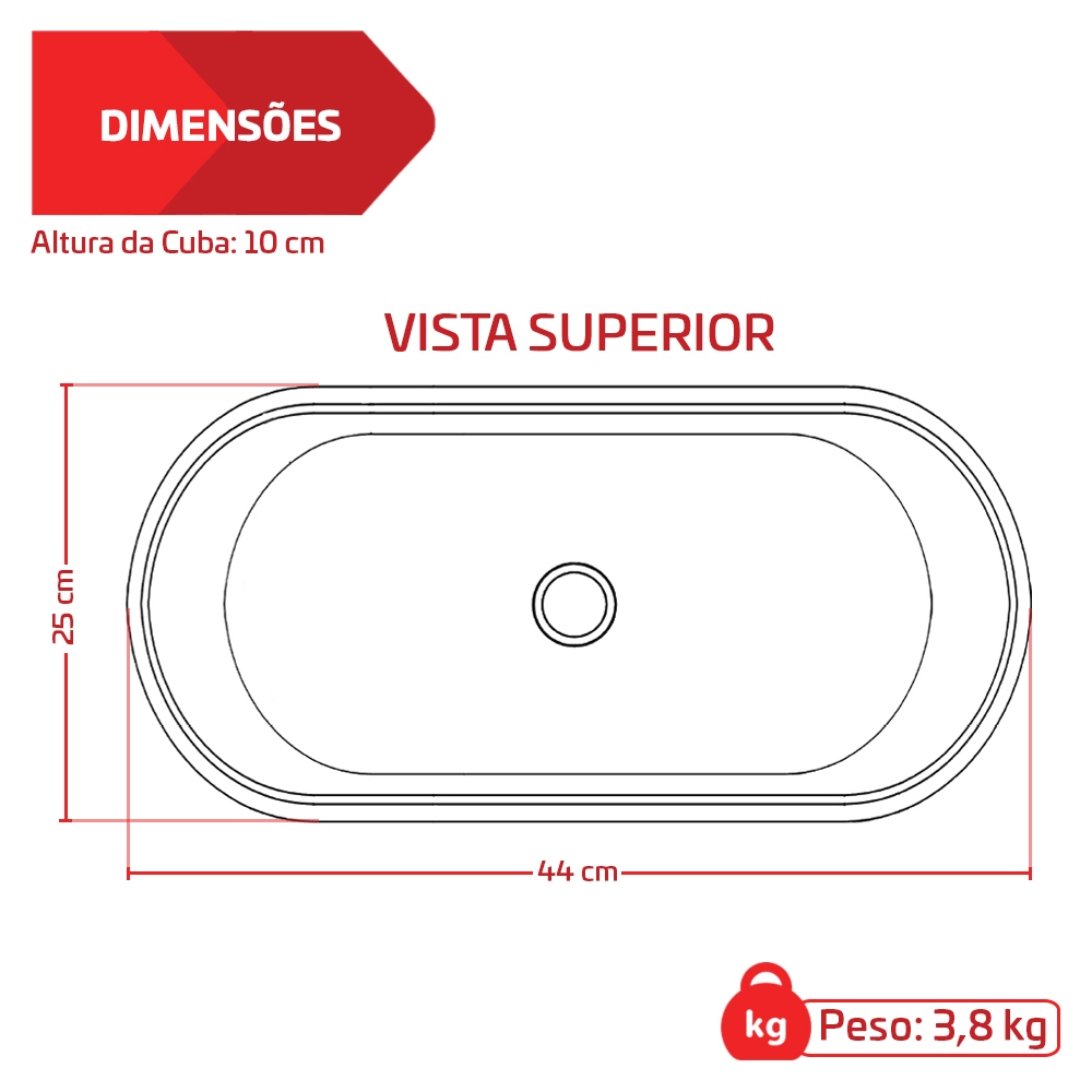 Cuba Pia De Apoio Oval 44x25cm Mármore Sintético Para Banheiro - Cozimax A Cuba Nimbus da Marca Cozimax é perfeita para o seu banheiro com design moderno e elegante, ela encantará a todos que a comprarem. Fabricada em mármore sintético resistente e de longa durabilidade, seu acabamento é polido brilhante. A instalação é normalmente realizada sobre o móvel (gabinete, armário ou bancada), mantendo toda a cuba aparente (cuba de apoio). Além de ser excelente para escoamento de água, possui formato adequado para facilitar a limpeza e a instalação sem dores de cabeça. DIFERENCIAIS - Design de alto padrão - Produto de alta qualidade - Feito em mármore sintético - Acabamento polido - Possui furação da válvula de 1 1/4 - Material resistente e de alto brilho - Embalagem com proteção extra para transporte INFORMAÇÕES TÉCNICAS - Marca: Cozimax - Modelo: Nimbus - Formato: Oval - Tipo de cuba: Apoio - Material: Mármore sintético - Acabamento: Brilhante (Polido) DIMENSÕES - Altura: 10cm - Largura: 25cm - Comprimento: 44cm - Furação válvula: 4cm - Peso: 3,8kg Esse anúncio é somente da cuba de mármore sintético Nimbus. NÃO acompanha torneira e válvula. GARANTIA DE 3 MESES