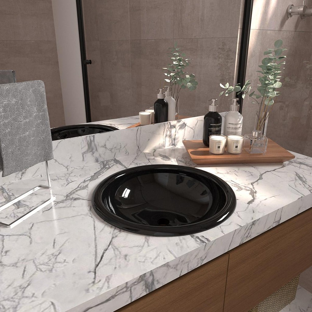 Cuba Pia Redonda de Apoio ou Sobrepor para Banheiro Lume Preto Brilho
