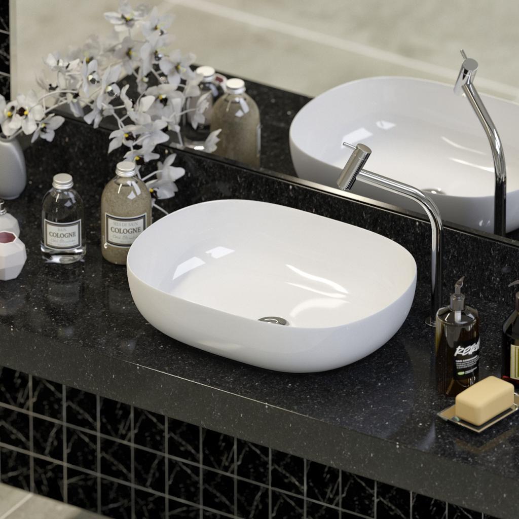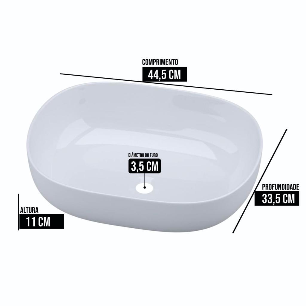 CUBA BANHEIRO SOBREPOR Nome modelo: VERONA Cuba oval moderna, amplo espaço interno. Possui somente furo para válvula - Excelente escoamento de água e desenvolvida para evitar respingos * Excelente acabamento, sendo muito resistente a riscos ou manchas * Recomendamos utilizar torneira alta para bancada ou parede, visto a cuba não possuir furação para torneira, apenas válvula DESCRIÇÃO CUBA: Matéria-Prima: Mármore Sintético (cerâmica) - textura em louça Comprimento externo: 44,5cm / Largura: 33,5 cm / Altura: 11 cm . Diâmetro do Furo para Válvula: 1.1/2" (35mm) - DN 35 COR: Branco Peso : 7 kg ITEM INCLUSO: 1 Cuba Sobrepor As cubas vão muito bem embaladas, possuindo uma embalagem própria de acordo com as dimensões do produto, incluindo caixa de papelão duplo, plástico bolha e cintas de papelão duplo para travar a cuba dentro da caixa, impedindo assim que ocorra avarias pelo transporte.