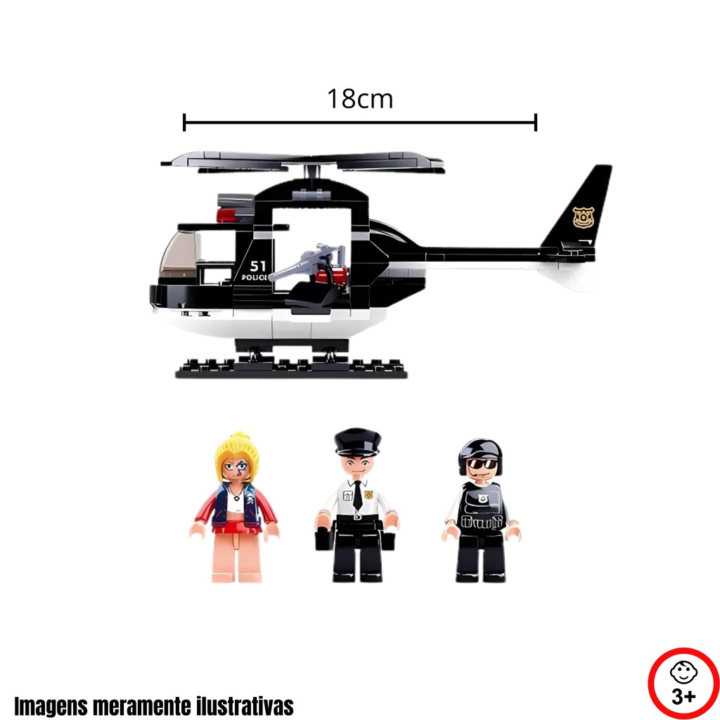 Cubic Brinquedo Blocos de Montar Helicóptero de Combate Policial 221 Peças Multikids - BR1459
