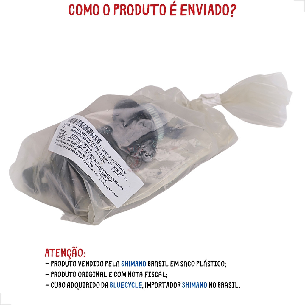 CUBO DIANTEIRO SHIMANO HB-QC300 36 FUROS P/ DISCO CENTER LOCK C/BLOCAGEM - ESFERAS ATENÇÃO: - Compatível com aros de 36 furos; - Verifique a quantidade de furos do aro ANTES da compra; - O cubo HB-QC300 é compatível com disco CENTER LOCK (porca única central); - Não serve com disco de 6 parafusos; - Eixo: 9x100mm – ACOMPANHA BLOCAGEM QR 133mm; - Sistema de rolagem: ESFERAS; - Item vendido pela Shimano Brasil em embalagem PLÁSTICA, não segue na tradicional caixa Shimano – Conforme última imagem do anúncio. Esse anúncio é apenas do cubo DIANTEIRO para aro de 36 furos, trabalha com GARFO / SUSPENSÃO normal de 100mm e com blocagem padrão QR. Os cubos QC300 da Shimano foram lançados em 2023 e substituíram os modelos TX505 de cubos. O QC300 tem uma ótima construção, com corpo em alumínio. Já o eixo e blocagem são em Aço. Trabalha com sistema de freio a disco, o padrão do disco compatível é CENTER LOCK, padrão Shimano fixação de discos de freio por uma porca única central. Possui sistema de rolagem com ESFERAS soltas, tradicional padrão da Shimano. Especificações: - Marca: SHIMANO; - Linha: TOURNEY TX; - Modelo: HB-QC300 - 36 FUROS; - Modalidade: TREKKING / URBANO; - Material: Corpo – Alumínio, Eixo – Aço, Blocagem - Aço; - Cubo Dianteiro; - Tipo: Blocagem QR (tradicional); - Diâmetro Eixo: 9mm; - Comprimento Eixo (O.L.D): Dianteiro - 100mm; - Comprimento da Blocagem: Dianteiro - 133mm; - Compatível com Disco padrão: CENTER LOCK c/ Porca aprto externo; - Furos para Raios: 36 Furos; - Sistema de rolagem: ESFERAS; - Ótima vedação contra impurezas, poeira e lama; - Diâmetro das Flanges: 52.8mm; - Distância das Flanges: 60.2mm; - Cor: Preto; - Peso aproximado: 182g – Cubo + 90g – Blocagem; - Origem: CHINA; - Part Number: AHBQC300AAL. Observação: - Acompanha o Eixo / blocagem; - Item vendido pela Shimano Brasil em embalagem PLÁSTICA, não segue na tradicional caixa Shimano – Conforme última imagem do anúncio; - Produto original SHIMANO e acompanha nota fiscal. Aguardamos o seu pedido! INDIAN BIKE SHOP