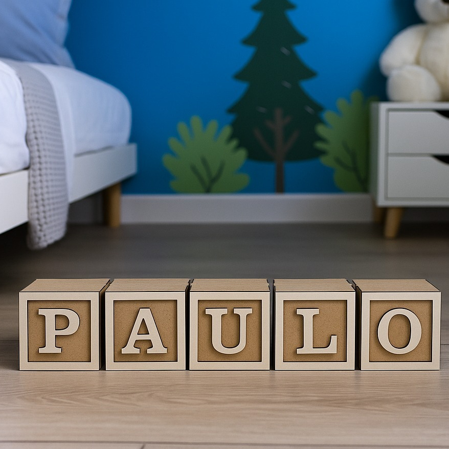 Cubo em MDF com Letra Personalizada - Decoração Criativa ✨ Transforme sua decoração com nossos cubos em MDF personalizados! Cada peça é feita em MDF 3mm de alta qualidade, perfeita para formar nomes, frases ou iniciais de forma criativa e moderna. 💡 Como comprar: Compre a quantidade de cubos referente ao número de letras do nome desejado. Exemplo: PAULO → 5 letras → 5 unidades. Após a compra, envie o nome pelo chat para personalização. 📏 Dimensões disponíveis: 5x5x5 cm 8x8x8 cm 10x10x10 cm 🌟 Diferenciais: Corte a laser com acabamento impecável Ideal para festas, decoração de ambientes e presentes personalizados Leve, resistente e com design exclusivo 👉 Garanta já o seu e crie uma decoração única e cheia de personalidade!