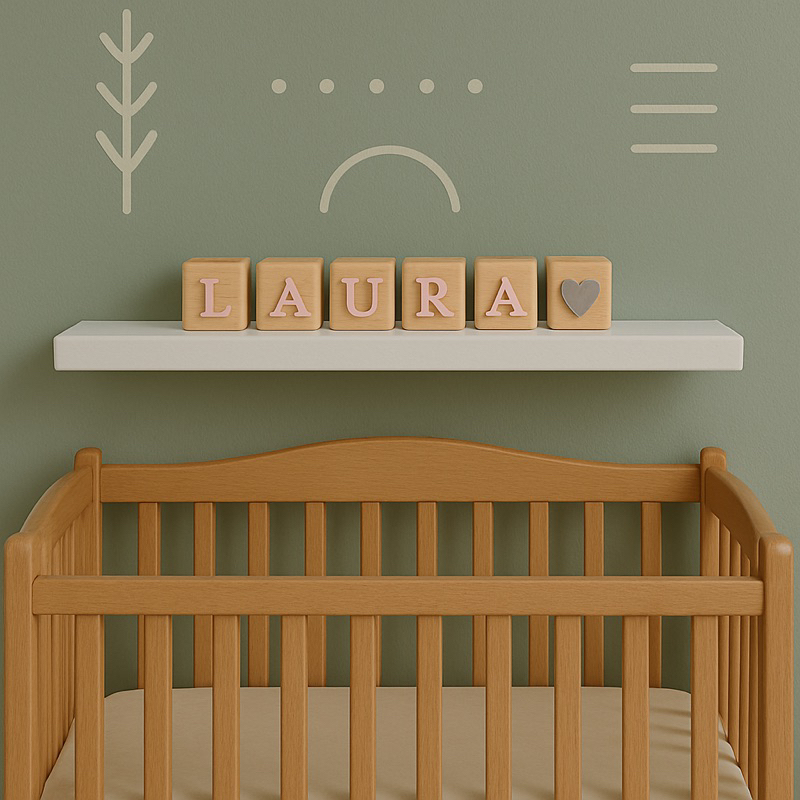 O produto perfeito para decorar o quarto do seu bebê está aqui! 🥰 ATENÇÃO ⚠️ A personalização do pedido deve ser enviada imediatamente via chat após o pagamento. Caso não seja enviada no prazo de 24 horas após o pagamento, o pedido será enviado sem personalização. O anúncio refere-se a cubos maciços de madeira pinus personalizados com letras e/ou desenhos em MDF. MEDIDAS: Cada cubo mede 5x5cm e cada letra 3cm. Temos muitas cores e as letras podem ser coloridas também.