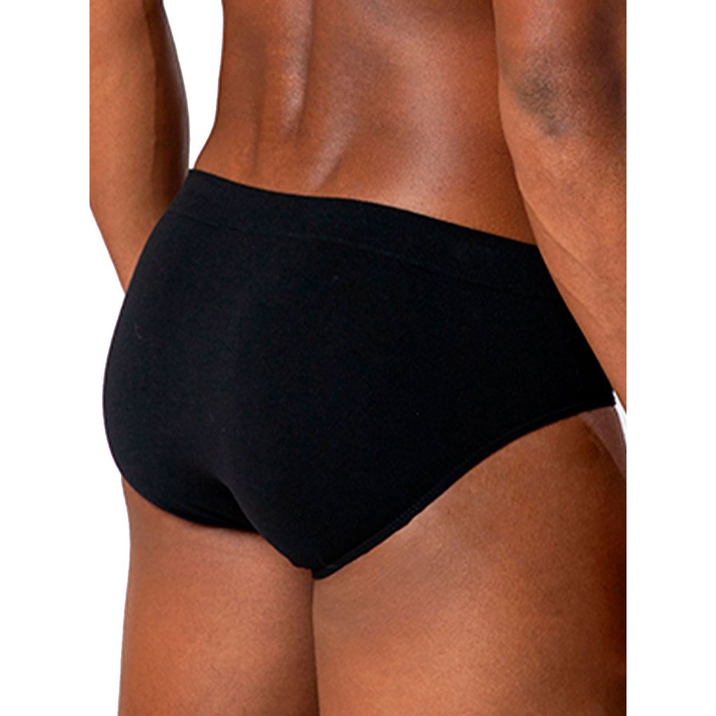 Características: Cueca modelagem slip sem costura. Confeccionada em tecido modal. Formato anatômico e ajuste perfeito. Com cós elástico extremamente suave. Composição: 64% Modal, 33% Poliamida e 03% Elastano.
