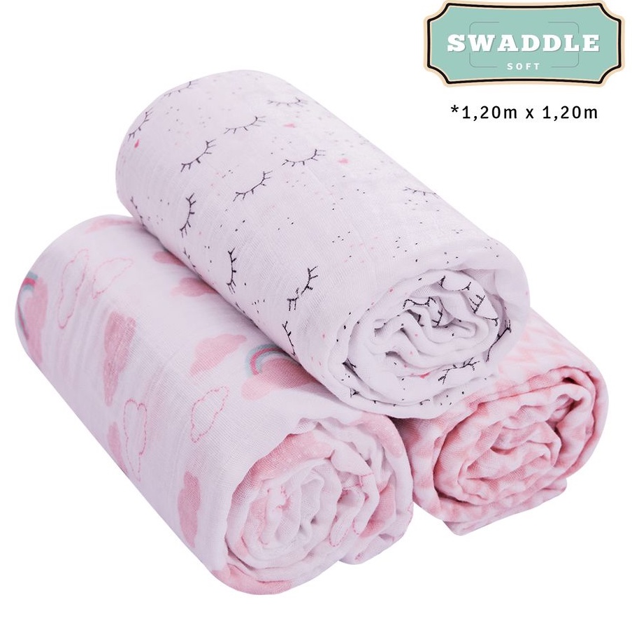 CUEIRO SWADDLE SOFT BAMBOO MAMI 1,20m X 1,20m CONTEM 03 UNIDADES