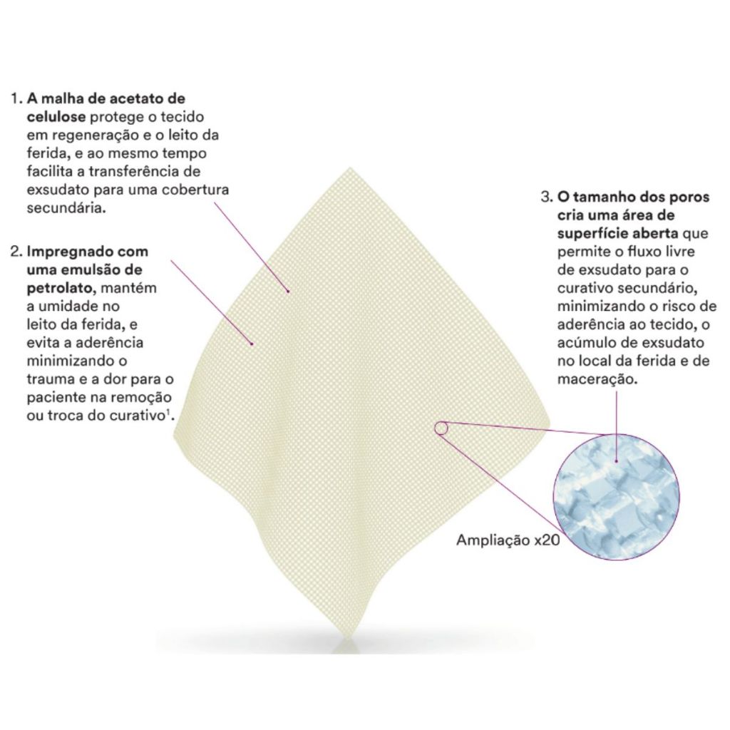 O Curativo Não Aderente ADAPTIC™ é uma solução avançada, apresentando uma camada única de contato com a ferida, feita de acetato de celulose tricotada e impregnada com uma emulsão à base de Petrolato. Características: Camada Única de Contato: Composta por acetato de celulose tricotada e emulsão à base de Petrolato. Remoção Fácil: Minimiza a dor durante a troca do curativo1. Cobertura Não Aderente: Macia e suave, evita acúmulo de exsudato na ferida. Indicado para Diversas Feridas: Queimaduras, lacerações, enxertos, úlceras venosas e de decúbito. Adaptação Personalizada: Pode ser recortado conforme o tamanho da ferida. Compatível com Compressão: Pode ser usado sob compressão, oferecendo versatilidade no cuidado. Aplicações Sugeridas: Versátil e eficaz, o Curativo Não Aderente ADAPTIC™ é indicado para uma ampla gama de feridas, desde queimaduras até incisões cirúrgicas. Sua formulação única proporciona uma experiência de cicatrização confortável e eficiente, adaptando-se às necessidades específicas de cada paciente.
