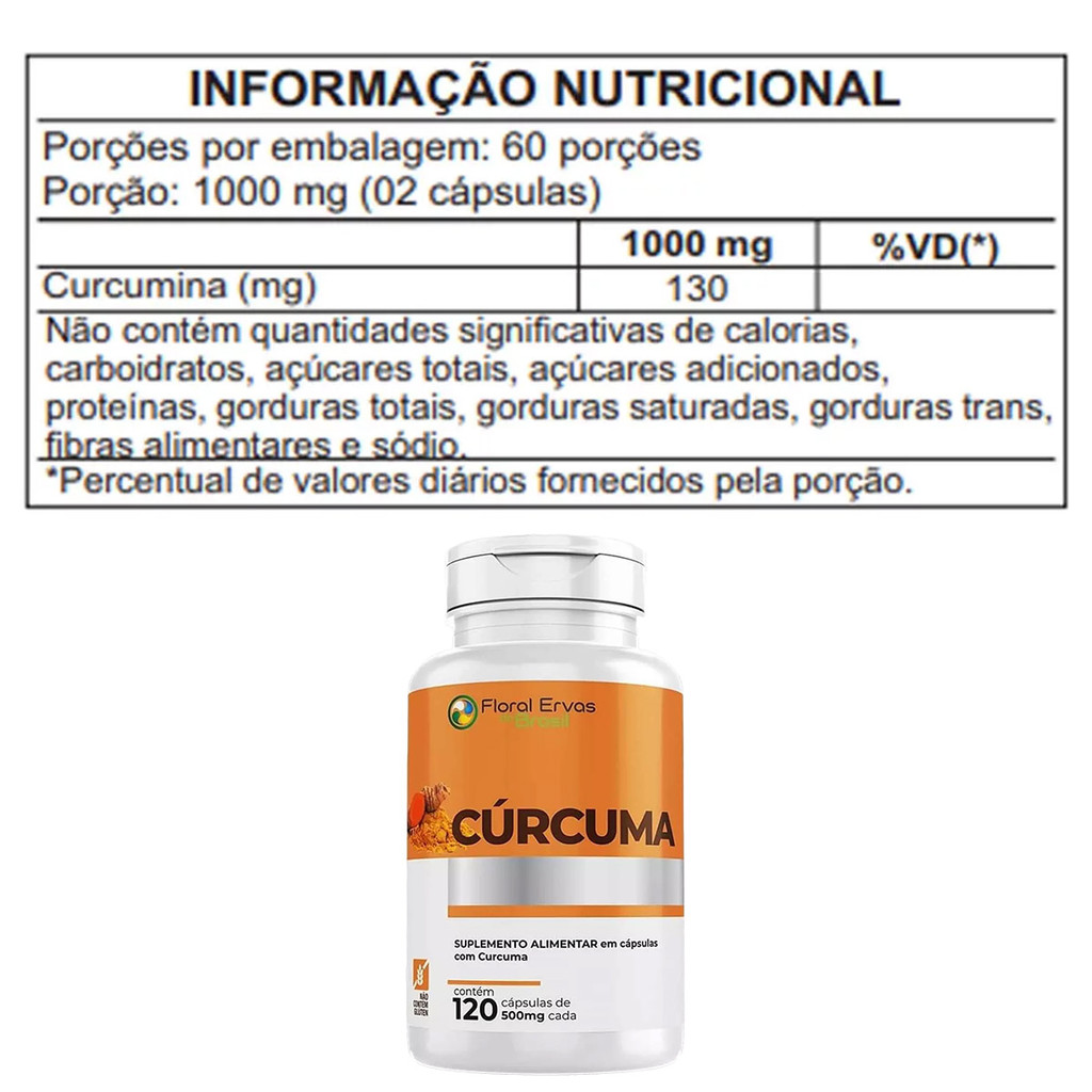Cúrcuma 500mg Original 120 Cápsulas Curcumina Floral Ervas