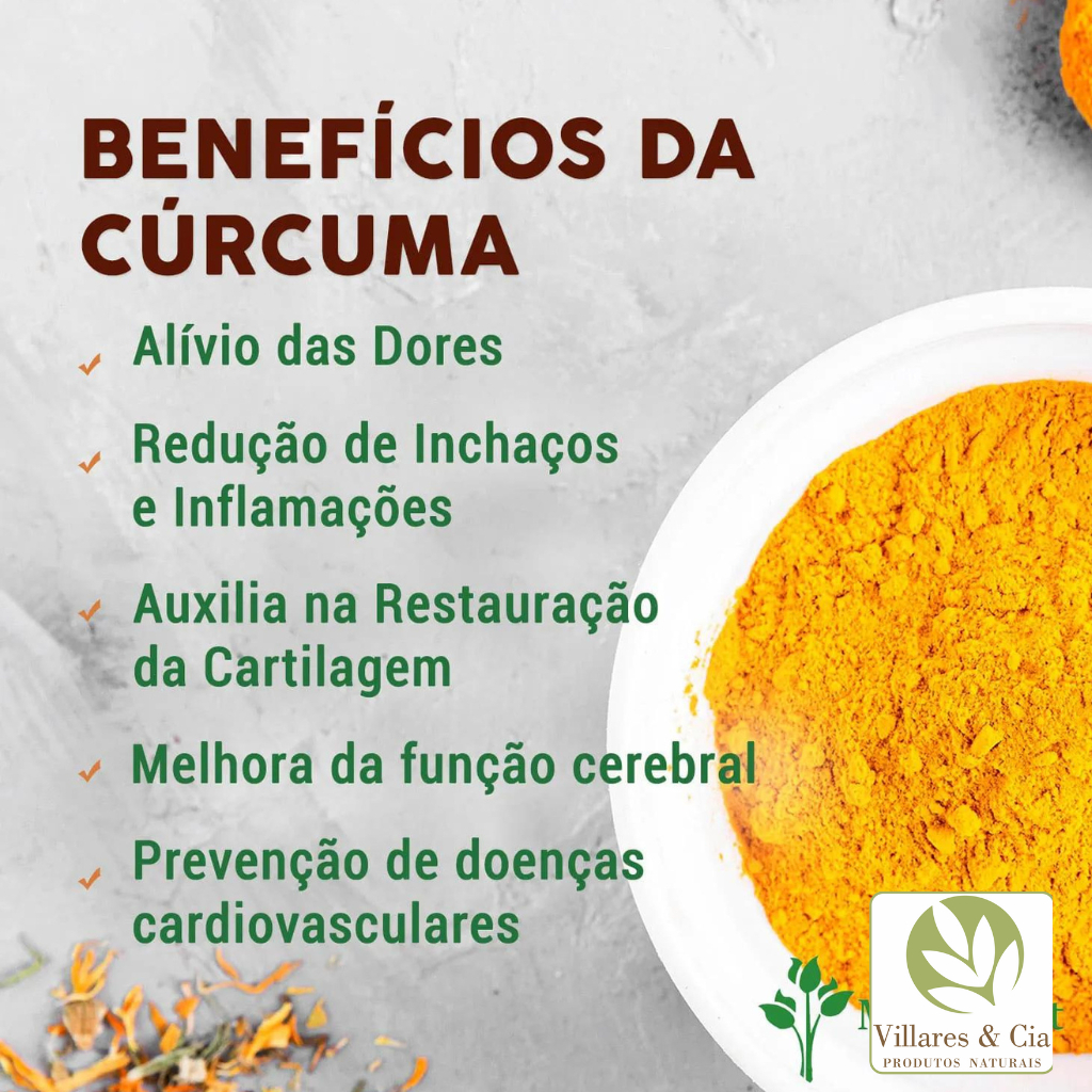 🌿 Cúrcuma em Cápsulas: Um Complemento para Sua Saúde 🌿 A Cúrcuma, conhecida por suas propriedades anti-inflamatórias e antioxidantes, agora está disponível em cápsulas para uma forma prática de incorporar seus benefícios no dia a dia. 🌟 Benefícios da Cúrcuma em Cápsulas: ✅ Antioxidante Potente: A Cúrcuma contém curcumina, um antioxidante que auxilia no combate aos radicais livres. ✅ Apoio à Saúde das Articulações: Suas propriedades anti-inflamatórias podem ser benéficas para as articulações e ajudar a aliviar desconfortos. ✅ Auxílio na Digestão: A Cúrcuma pode contribuir para uma digestão saudável e apoiar o equilíbrio intestinal. ✅ Alívio de Dores de Cabeça: Alguns estudos apontam que a Cúrcuma pode ajudar a reduzir a frequência de dores de cabeça, por seu potencial anti-inflamatório. ✅ Apoio em Doenças Degenerativas: Pesquisas investigam o potencial da curcumina como apoio em cuidados com doenças degenerativas, como Parkinson e Alzheimer. ✅ Fórmula Natural: Nossas cápsulas são feitas com ingredientes naturais e cuidadosamente selecionados. 💪 Energia e Vitalidade: Combinada a uma dieta equilibrada e hábitos saudáveis, a Cúrcuma pode ser um complemento diário. 🚀 Cuide da Sua Saúde! Inclua a Cúrcuma na sua rotina para apoiar seu bem-estar. Villares&Cia - Suplementos Alimentares Forma de Uso: 3 cápsulas ao dia, preferencialmente com as refeições. Validade: 2 anos após a fabricação.