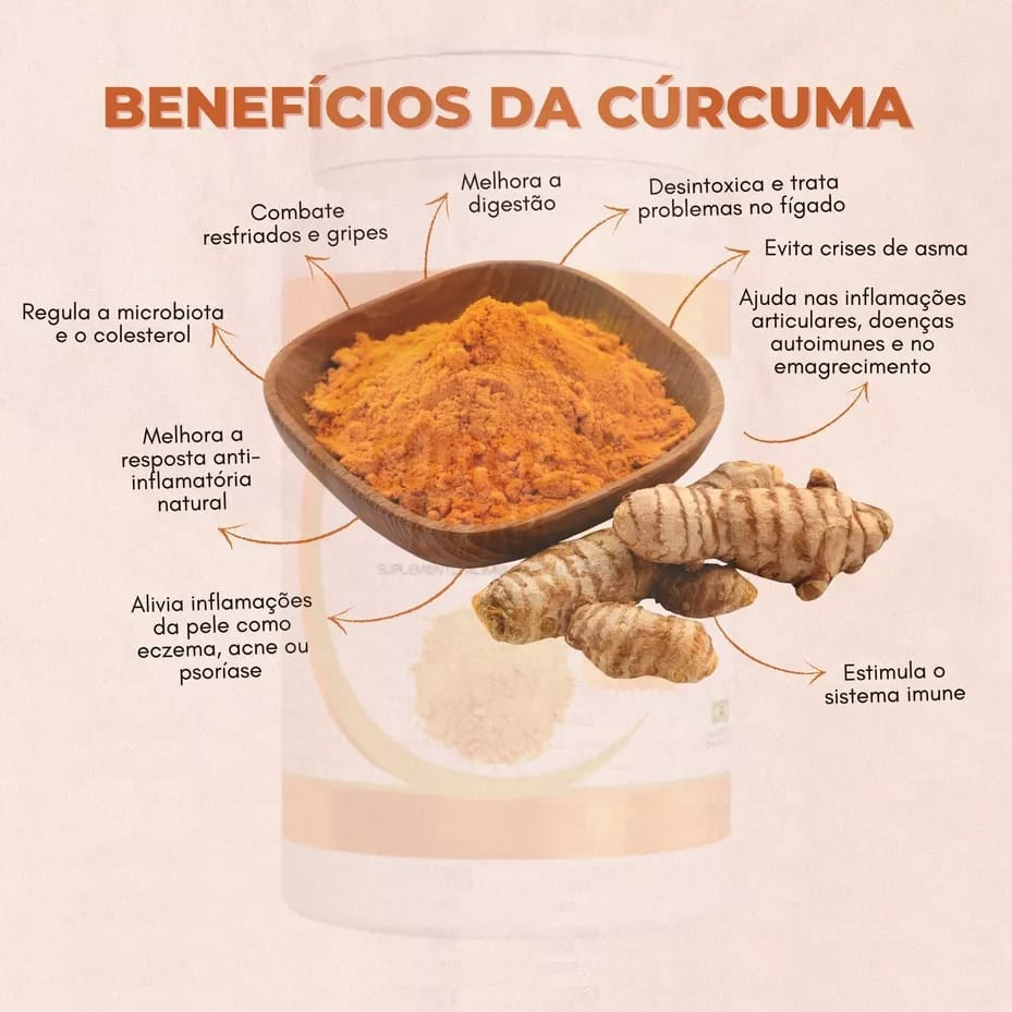 Cúrcuma Longa 120 Cápsulas – Açafrão da Terra Natural Cuide da sua saúde todos os dias com a Cúrcuma Longa, um suplemento natural rico em curcumina, conhecido por sua poderosa ação antioxidante e por auxiliar no bem-estar do corpo. Principais benefícios: Auxilia na saúde das articulações e no conforto diário Contribui para o fortalecimento da imunidade Ajuda no combate aos radicais livres (ação antioxidante) Pode auxiliar no equilíbrio do colesterol e da glicemia Promove mais disposição e energia para a rotina Conteúdo: 120 cápsulas Rendimento prolongado com excelente custo-benefício Modo de uso: ingerir 1 cápsula ao dia ou conforme orientação profissional. Ideal para quem busca uma rotina mais saudável de forma natural, prática e segura. Garanta agora sua Cúrcuma Longa 120 cápsulas e inclua esse cuidado essencial no seu dia a dia!