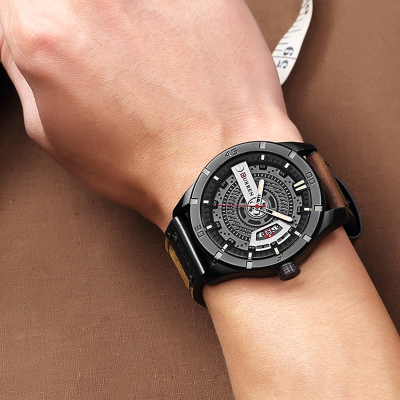 CURREN Casual Simples Desgaste Diário Couro Quartzo Relógio Masculino Impermeável 8301 X