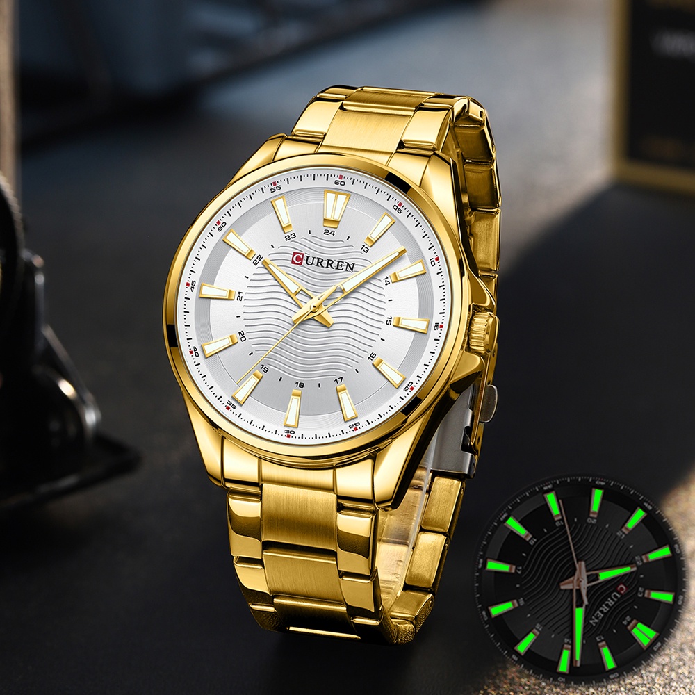 CURREN Clássico Relógios Masculinos De Marca De Quartzo Simples De Aço Inoxidável Com Mãos Luminosas 3ATM À Prova D'água 8424 XQ Sem Caixa