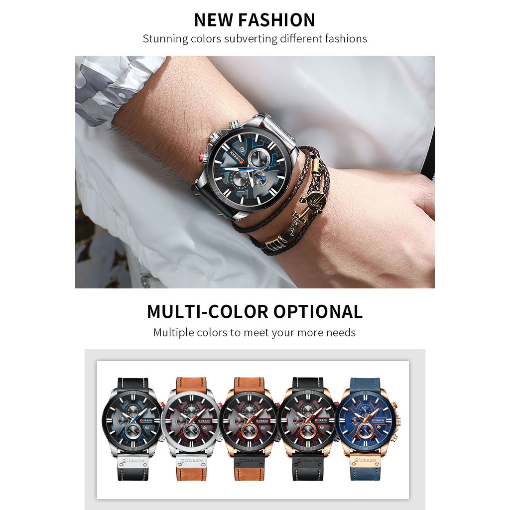 Curren Relógio Cronógrafo Esporte Mens Relógios De Quartzo Relógio De Couro Masculino Relógio De Pulso Relogio Masculino Presente Da Moda Para Homens 8346