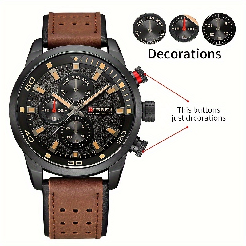 CURREN Relógio De Pulso Masculino Casual Esportivo Quartzo Couro À Prova D'água Simples 8250X