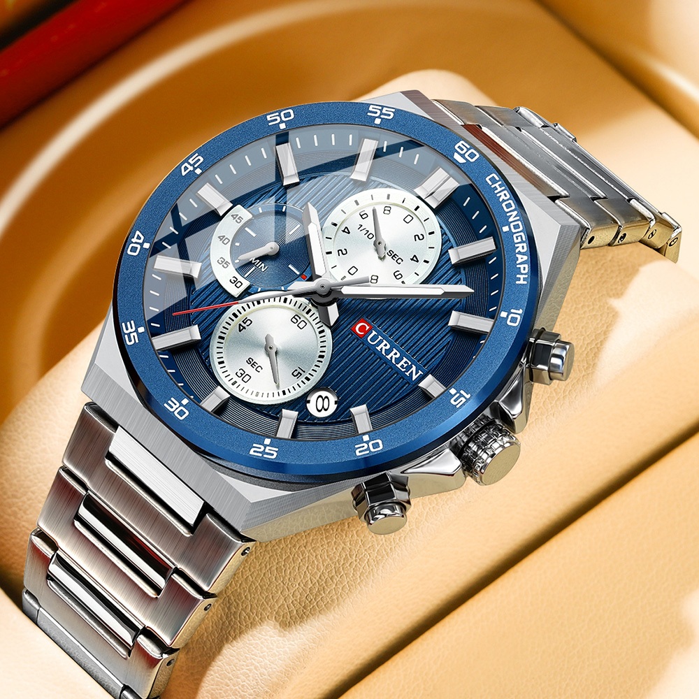 CURREN Relógio Masculino Novo Original Genuíno Pulseira De Aço Inoxidável Cronógrafo Luminoso Mostrador De Mãos Elegante