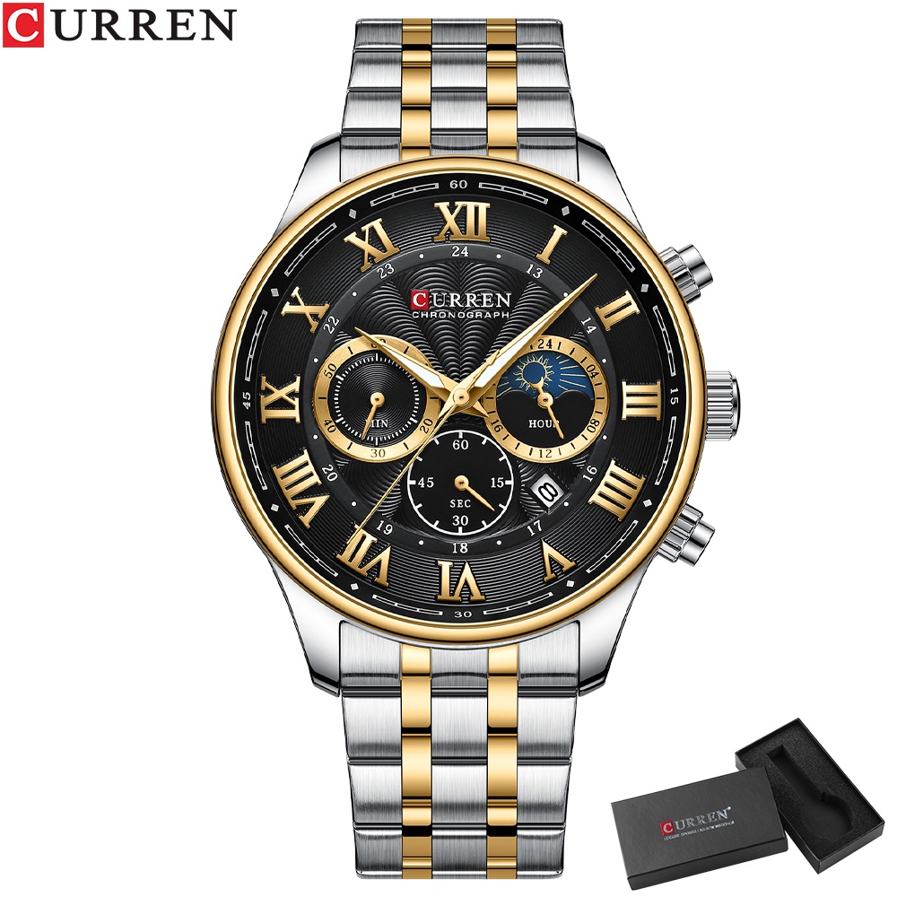 CURREN Relógios Masculinos Top Luxuoso Marca Nova Moda Aço Inoxidável Multifuncional Mãos Luminosas Negócios Casual Esportes Quartzo Impermeável Com Caixa 8427