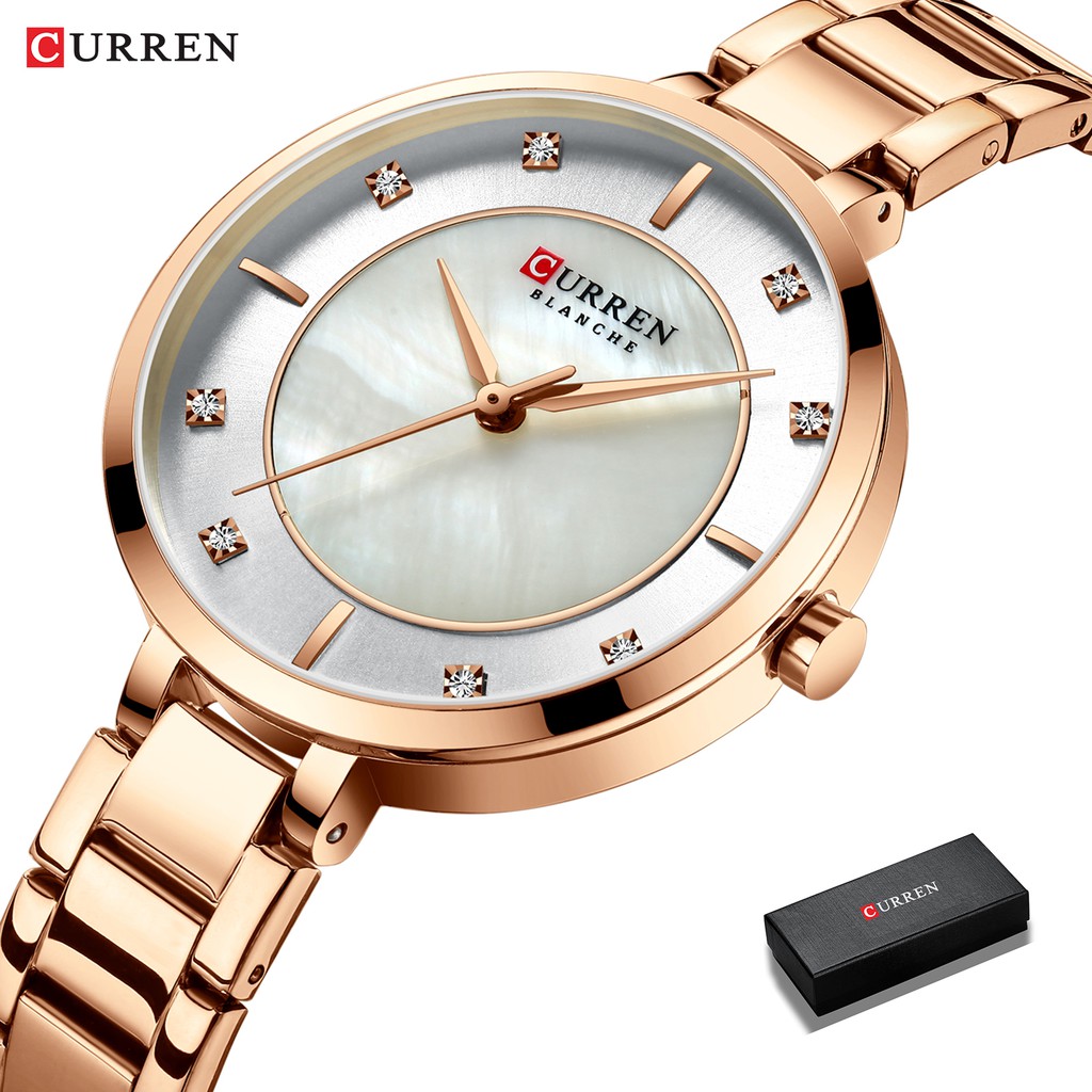 Curren Senhoras Relógios Moda Elegante De Quartzo Em Ouro Rosa De Aço 9051