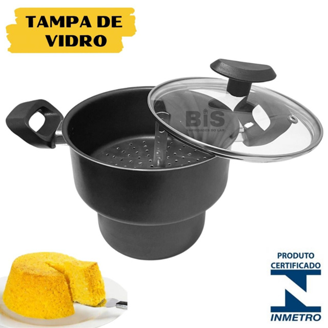 Cuscuzeira Antiaderente Com Tampa De Vidro Teflon Cuscuz Nordeste N16 Preto