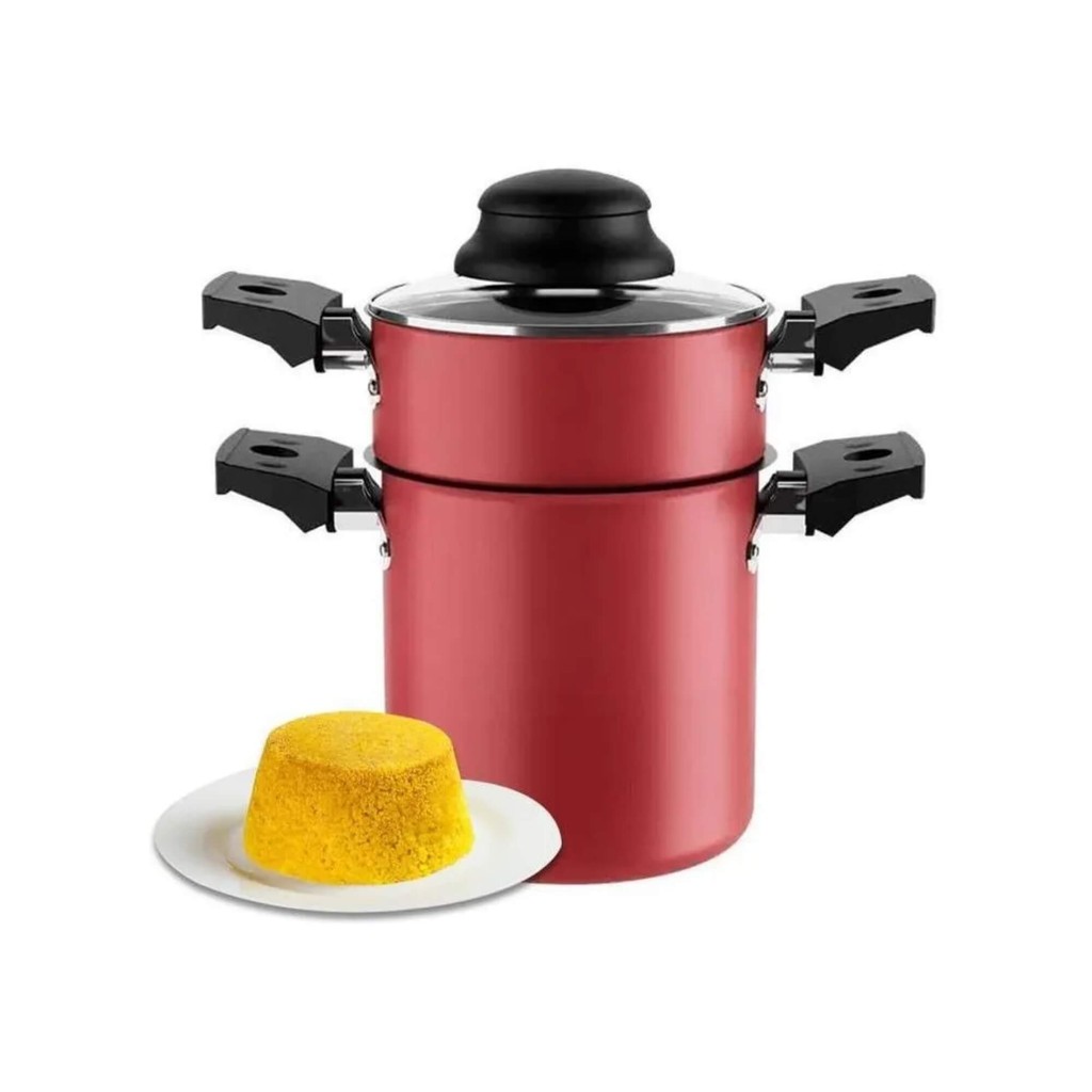 Cuscuzeira c/ Tampa 10cm Diâmetro 800ml Antiaderente Pro-flon Cor Vermelho Brinox - 7102/360