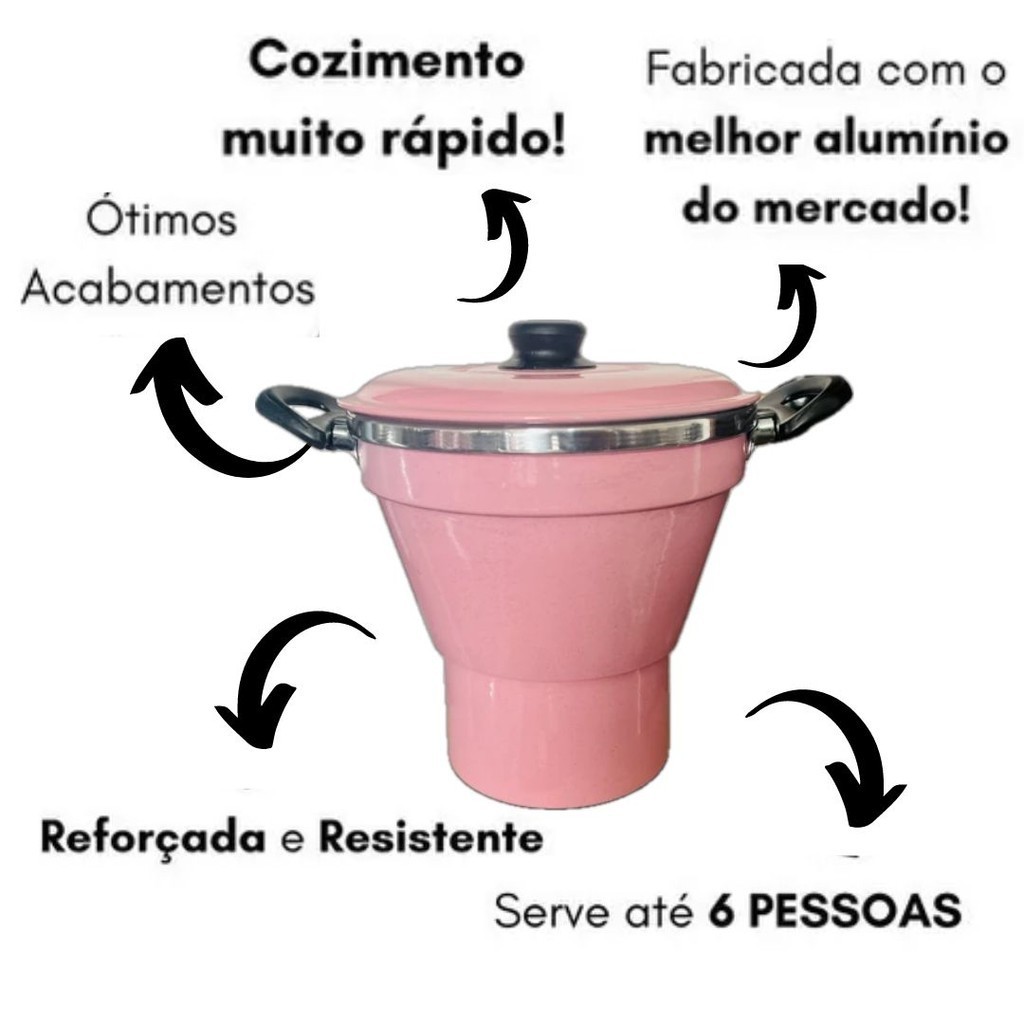 Cuscuzeiro Aluminio Na Cor ROSA Tamanho M Nº16 Cuscuz Nordestino