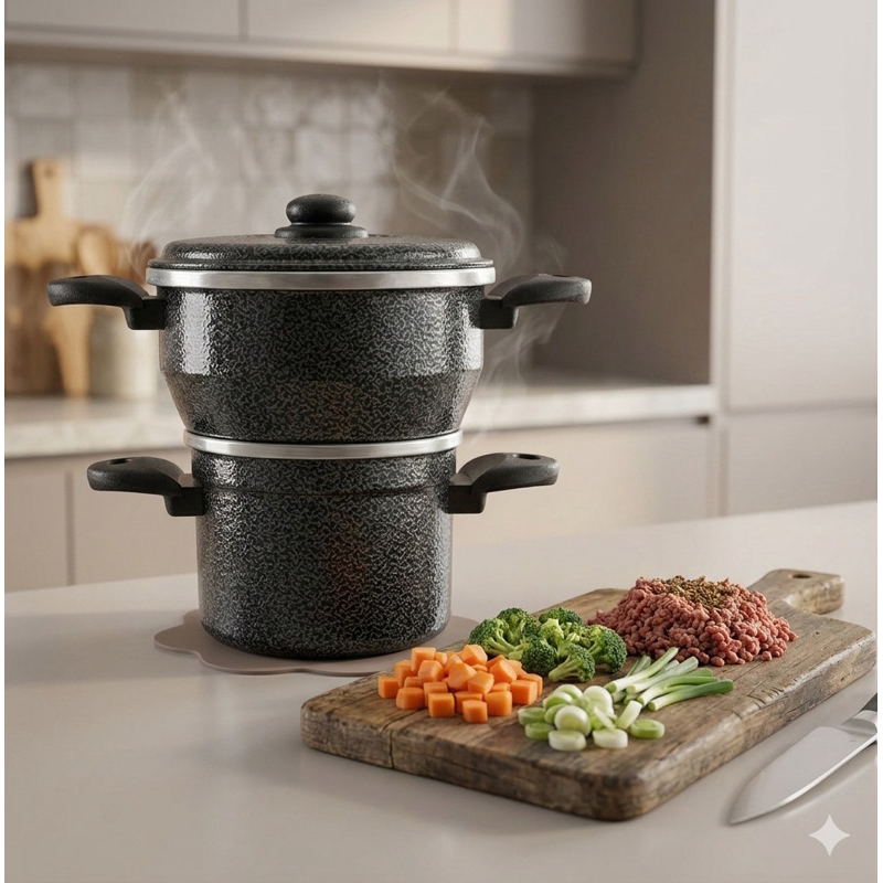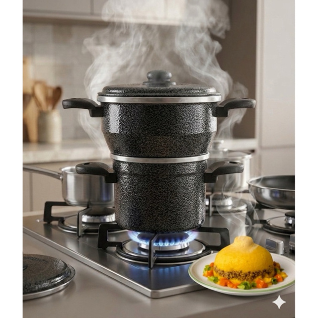 Destaques que fazem a diferença! O Cuscuzeiro Nordestino com Tampa Antitérmica é perfeito para quem busca praticidade e segurança na hora de preparar cuscuz. Com capacidade para duas porções individuais, ele garante refeições rápidas e saudáveis, preservando os nutrientes dos alimentos. O fundo de alumínio proporciona um cozimento eficiente, enquanto a tampa antitérmica oferece conforto e proteção durante o uso. Opções de Cores para Seu Gosto Escolha entre as versões disponíveis: Cuscuzeiro Alumínio Polido, Cuscuzeira Preta Craqueada ou Cuscuzeiro Vermelho. Assim, você pode combinar o utensílio com o estilo da sua cozinha! Versatilidade e Facilidade de Uso Ideal para preparar cuscuz, legumes no vapor ou ferver água, este cuscuzeiro é fácil de limpar e mantém o sabor autêntico das receitas nordestinas. Detalhes do Produto - Capacidade para duas porções - Fundo de alumínio para cozimento rápido - Tampa antitérmica para maior segurança - Dimensões aproximadas: altura 22 cm, largura 22 cm com alça, diâmetro da cuscuzeira 14 cm, fervedor 11 cm Leve mais praticidade e sabor para sua cozinha com o Cuscuzeiro Nordestino!