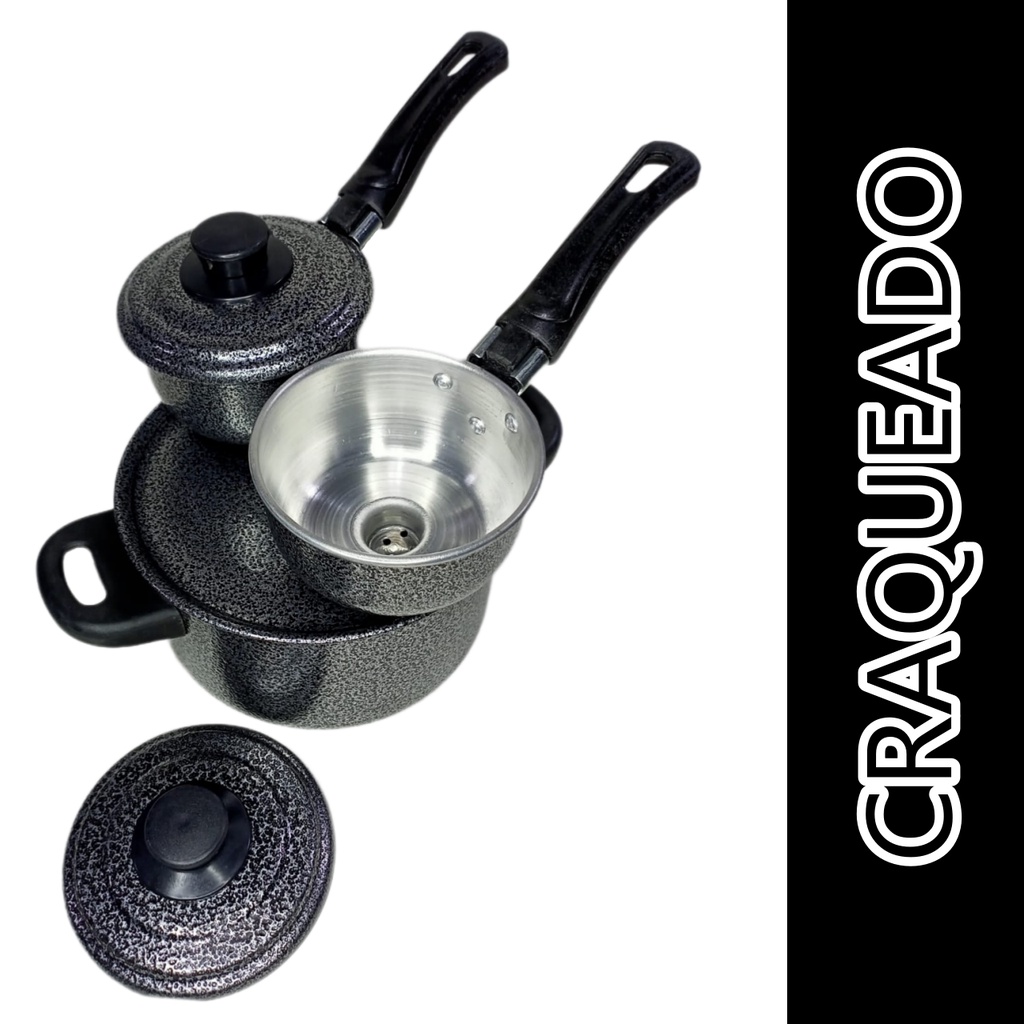 Descrição do produto: olá meus amigos e clientes, venho apresentar nosso novo lançamento de cuscuzeiro individual com 2 panelinhas (concha) para restaurantes, lanchonetes, e famílias com duas pessoas ou mais , essa cuscuzeira é muito pratica e rápida pois a mesma faz 2 cuscuz de uma vez só utilizando somente uma boca do fogão. Deixe sua cozinha mais equipada com essa cuscuzeira nordestina dupla e facilite os preparos do dia a dia dicas de receitas: 1-O primeiro passo é a massa, coloque o sal, a água, e deixe descansar por alguns minutos, até ela ficar fofinha. 2-Enquanto a massa descansa, corte os tomates em rodelas bem finas, reserve. Terminado o tempo indicado para a massa ficar fofinha, coloque uma camada da massa na cuscuzeira, outra camada de tomate, outra de presunto, e por fim o queijo. 3-Repita essa operação até teminar a massa para fazer o cuscuz. 4-Por fim, coloque uma camada em cima de queijo, e salpique um pouco de orégano. 5-Leve ao fogo. Quando o queijo derreter é só retirar e servir. feita em alumínio resistente com e segue todos os padrões do inmetro sob registro de número (001881/2021), todas as panelas são do mesmo tamanho com tampa, seus cabos são de banquelite resistente ante queimaduras com total segurança para nossos clientes, produto 100% original e certificado uma característica muito importante é a maciez que o cuscuz fica sendo feito nessa cuscuzeira, pode também dá aquele toque especial com carne seca e queijo, experimente e veja que é verdade. __________________Perguntas frequentes_____________ Quantos minutos o cuscuz fica pronto? - após a água está fervendo em media 2 minutos já da o ponto ideal cada porção rende mais ou menos quantas gramas ? - cada porção rende aproximadamente 200g ramas posso usar com fogo alto ? - Sim pode utilizar o fogo alto do fogão domestico, nunca ultilizar sem água no vaporizador E fácil de limpar ? - Sim ela é muito fácil de limpar Medidas : panelinha ( cuba ) largura: 9,5cm profundidade 5 cm Vaporizador : largura :15 cm Altura: 10,5 cm Obs. lavar todas as peças antes do uso qualquer duvida atendemos o chat, para que sua compra seja 100% segura obrigado por visitar nossa loja e aguardamos sua compra