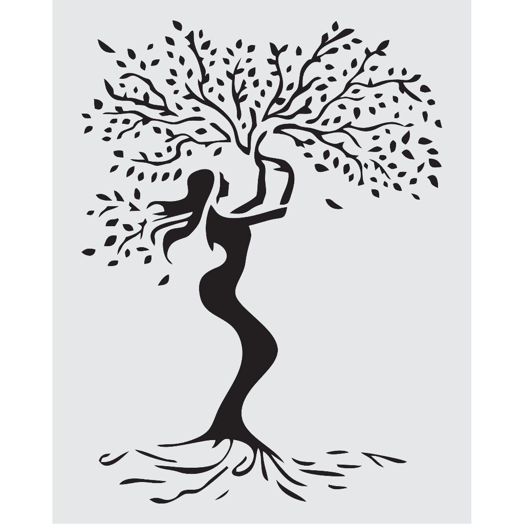 CUT0110 - Stencil Pintura 20X25cm Mulher Árvore da Vida Mylar 190 Micras