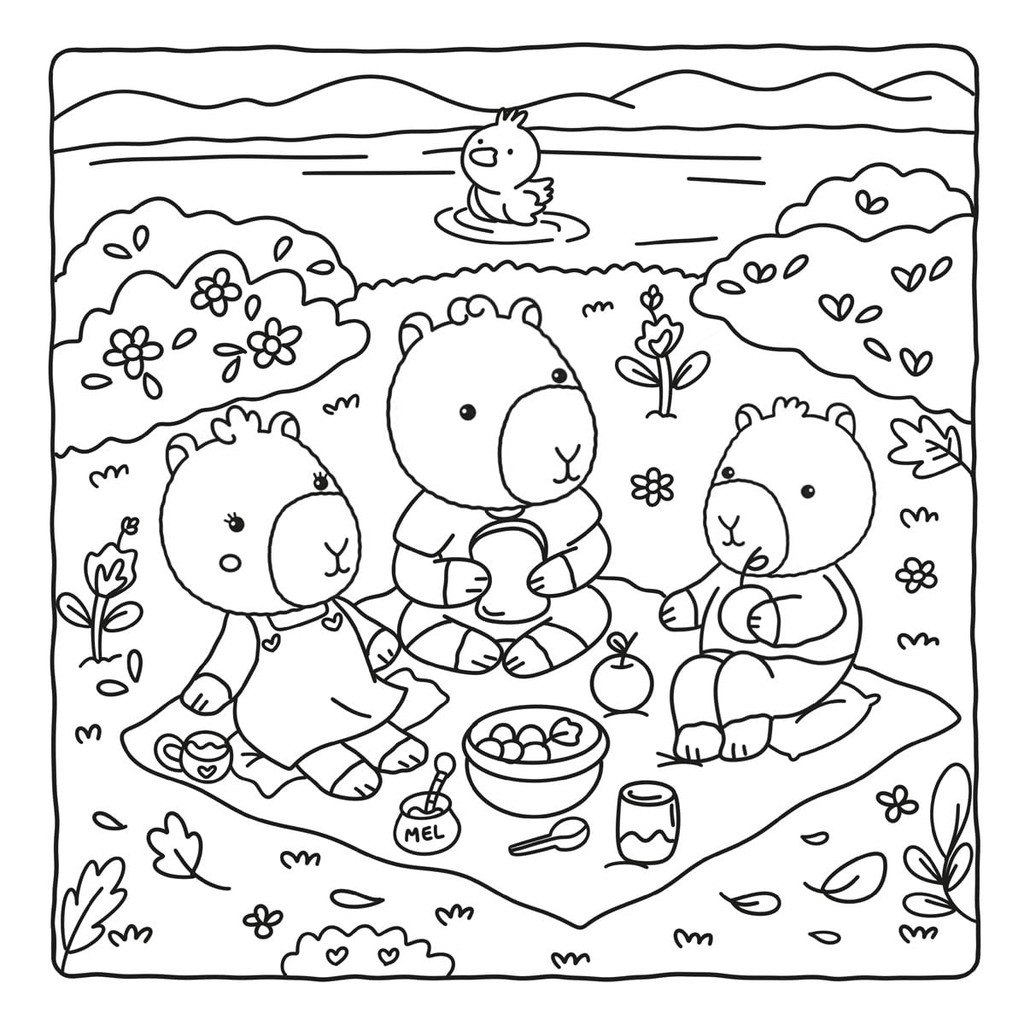 Cute capybaras | Livro De Colorir
