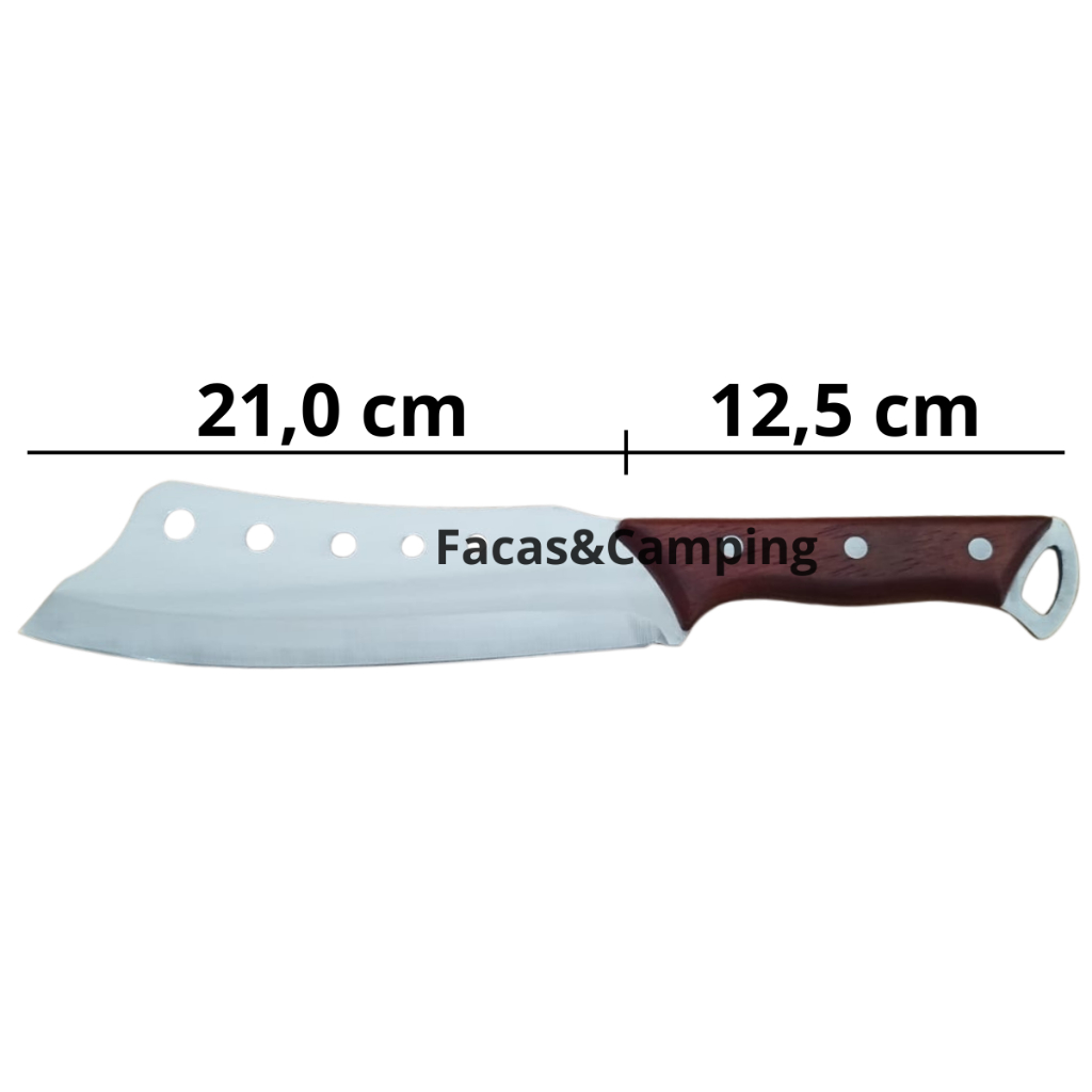 Olá futuro cliente, esperamos que esteja bem. Obrigado pela visita! Transforme sua experiência na cozinha e no churrasco com esse cutelo, projetado para quem busca força, precisão e durabilidade. Fabricado em aço de alta qualidade, o cutelo garante cortes firmes e eficientes em carnes, frutas, legumes e alimentos mais duros. O cabo em madeira anatômico oferece firmeza, segurança e conforto durante o manuseio, mesmo em longos períodos de uso. Acompanha bainha de proteção, que facilita o transporte e o armazenamento, mantendo sua lâmina protegida e pronta para uso. Seu design robusto e moderno, com detalhes de perfurações na lâmina, garante leveza no corte e estilo diferenciado. Perfeito para: Churrasco: cortar carnes e peças grandes com facilidade. Cozinha: ideal para cortes mais pesados e preparo de alimentos. Camping e pesca: ferramenta multifuncional para aventuras ao ar livre. Especificações: Material da lâmina: Aço Cabo: Madeira Acompanha bainha protetora Uso: Churrasco, cozinha, camping e preparo de carnes Benefícios: Corte preciso e resistente Cabo ergonômico em madeira Alta durabilidade Design robusto e estiloso Versátil para várias situações Esse cutelo é a escolha certa para quem deseja potência, beleza e praticidade em um só produto.