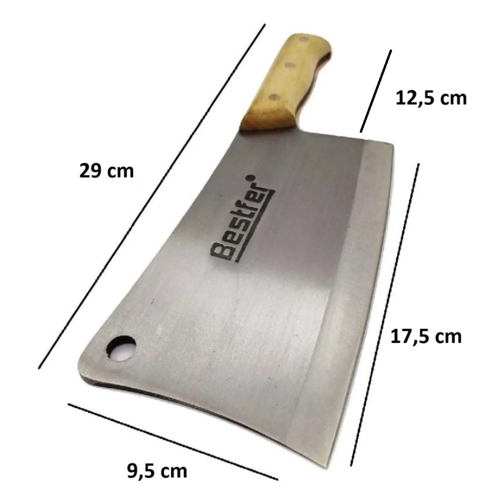 Cutelo Profissional em Aço Manganês 17,5 cm Rústico Bestfer Descubra o poder e a eficiência do Cutelo Profissional Bestfer, uma ferramenta essencial para qualquer amante da culinária. Com uma lâmina de 17,5 cm feita de aço manganês, este cutelo oferece um corte preciso e robusto, ideal para churrascos, BBQs e uso diário na cozinha. O aço manganês é conhecido por seu excelente acabamento, resistência e durabilidade, garantindo que o cutelo mantenha seu desempenho por muito tempo. Além disso, o tratamento térmico especial aplicado à lâmina aumenta sua dureza e estabilidade, evitando fraturas e deformações. O design Full Tang, com cabo de madeira, proporciona um manuseio seguro e confortável, permitindo cortes precisos em carnes duras ou grandes. Embora não seja apto para lava-louças, o cuidado com a lâmina é simples: basta secá-la bem após a lavagem e aplicar algumas gotas de óleo de cozinha para mantê-la como nova. Este cutelo não é apenas uma ferramenta de corte, mas um aliado para transformar sua experiência culinária. ESPECIFICAÇÕES TÉCNICAS: - Comprimento da lâmina: 17,5 cm - Largura da lâmina: 9,5 cm - Espessura da lâmina: 0,55 cm - Comprimento do Cabo: 12,5 cm - Material da lâmina: Aço Manganês - Marca: Bestfer - Material do punho: Madeira - Comprimento total: 29 cm - Modelo: BFH1763 - Fonte do produto: Nacional - Peso da embalagem: 850 g - Com furo na lâmina FUNÇÕES E CARACTERÍSTICAS: - Lâmina robusta e resistente - Design Full Tang para maior estabilidade - Cabo ergonômico de madeira - Ideal para cortes precisos em carnes ORIGEM DO PRODUTO: - Fabricado no Brasil ITENS INCLUSOS: - 1 Cutelo Bestfer