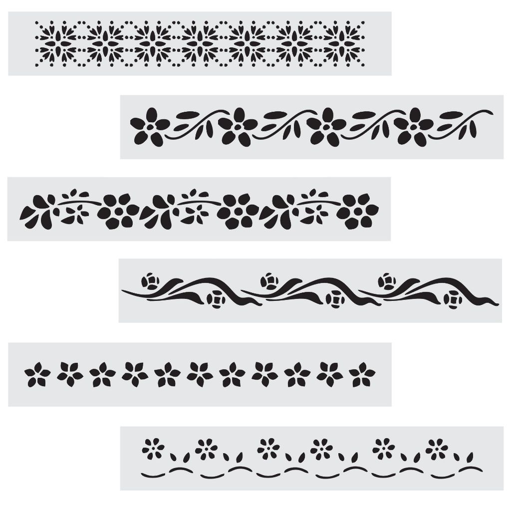 CUTK-0004 - Kit 6 Stencils Pintura Barrados Floral 5x30cm Mylar 190 Micras Branco Leitoso