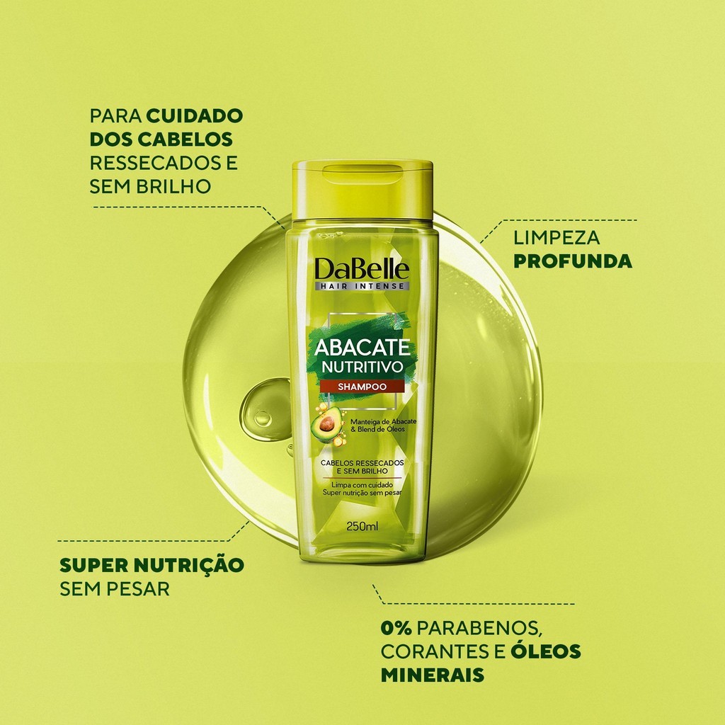 O Kit Abacate Nutritivo DaBelle traz 4 produtos essenciais para nutrição intensa e combate ao ressecamento. Com Óleo de Abacate, promove fios macios, brilho intenso e controle do frizz, transformando cabelos secos e opacos. O que o Kit Completo Contém (4 Produtos) · 1 Shampoo Abacate Nutritivo 250ml · 1 Condicionador Abacate Nutritivo 200ml · 1 Óleo em Creme Multifuncional 190ml · 1 Recarga de Nutrição Abacate Nutritivo 180ml Detalhes e Benefícios de Cada Item Shampoo Abacate Nutritivo Limpa profundamente sem agredir, mantendo a hidratação natural. Condicionador Abacate Nutritivo Sela as cutículas, alinhando os fios e reduzindo o frizz. Óleo em Creme Multifuncional Nutre, protege do calor e finaliza com brilho e maciez. Recarga de Nutrição Tratamento concentrado que potencializa a máscara ou uso solo. Benefícios Adicionais · Nutrição Profunda: Cabelos hidratados e revitalizados. · Controle do Frizz: Fios disciplinados e sem aspereza. · Rotina Completa: Tratamento da lavagem à finalização. Modo de Uso Lave com shampoo e aplique condicionador. Use a recarga pura ou com máscara para potencializar a nutrição. Finalize com óleo em creme nos fios úmidos ou secos.