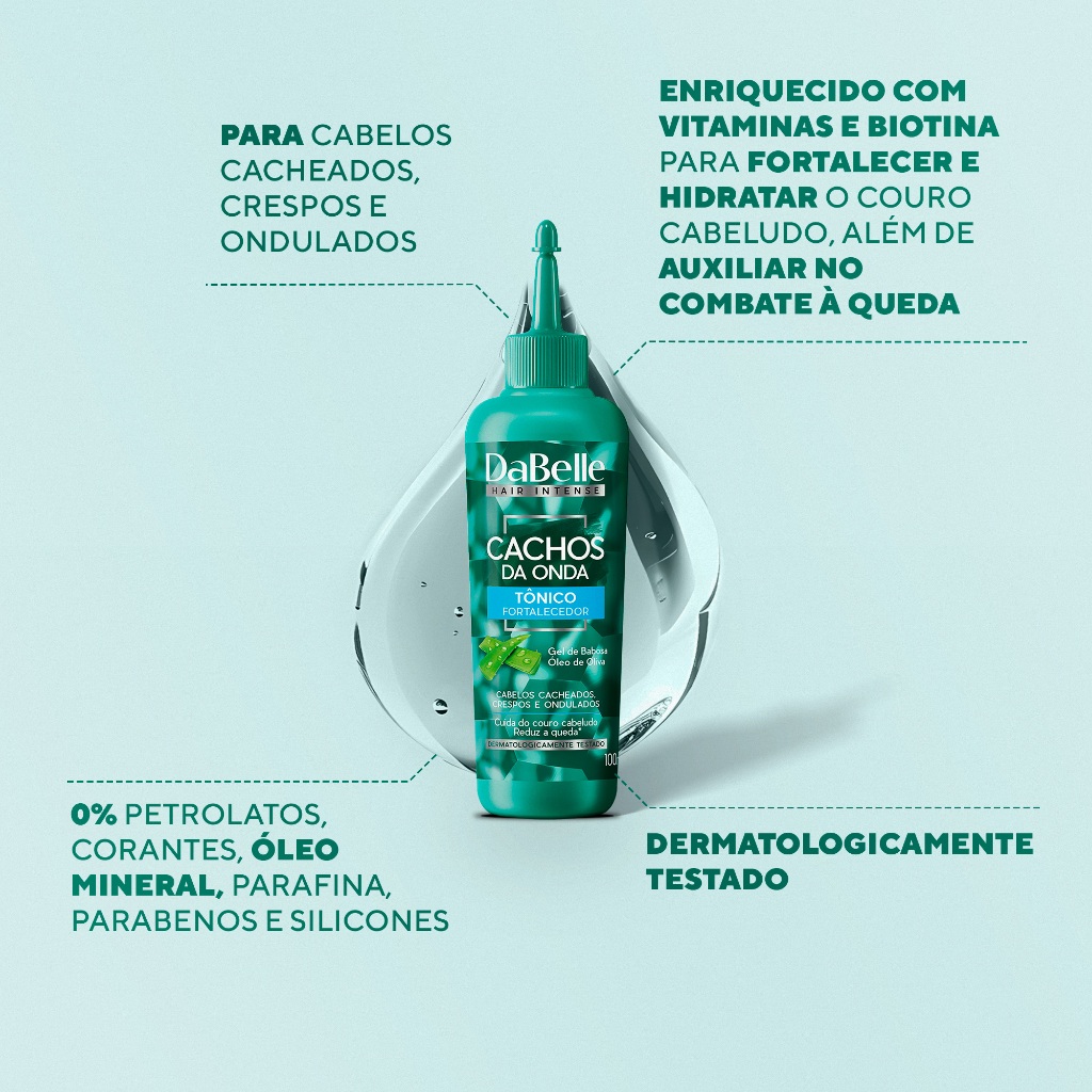 O kit de tônicos capilares da DaBelle oferece uma solução completa para fortalecer os fios, estimular o crescimento saudável e proporcionar cachos mais definidos e hidratados. Tônico Fortificante DaBelle SOS Crescimento O que é: Um tônico capilar desenvolvido para fortalecer a raiz e reduzir a queda dos cabelos fracos e quebradiços. Ações: Fortalece a raiz enfraquecida. Auxilia no controle da queda capilar. Nutre e hidrata profundamente o bulbo capilar. Resultado no cabelo: Fios mais fortes, saudáveis e com crescimento estimulado. Tônico de Crescimento DaBelle Meu Cronograma Perfeito O que é: Um tônico capilar liberado, adequado para qualquer etapa do cronograma capilar, que fortalece a raiz, combate a queda e controla a oleosidade excessiva. Ações: Fortalece as raízes capilares. Auxilia no combate à queda de cabelo. Controla o excesso de oleosidade. Resultado no cabelo: Cabelos mais fortes, com crescimento saudável e equilibrados em relação à oleosidade. Tônico Fortalecedor DaBelle Cachos da Onda O que é: Um tônico capilar enriquecido com vitaminas e biotina, especialmente formulado para fortalecer e hidratar o couro cabeludo, auxiliando no combate à queda e promovendo cachos mais saudáveis. Ações: Cuida do couro cabeludo. Reduz a queda. Fortalece e hidrata o couro cabeludo. Auxilia no combate à queda. Fortalece a raiz e ajuda na prevenção da queda de cabelo. Proporciona alto poder de hidratação. Cuida e trata da raiz para que os cabelos cresçam mais fortes. Resultado no cabelo: Cabelos cacheados mais fortes, hidratados e definidos. MODO DE USO: Após lavar e tratar os cabelos, aplique o tônico por todo o couro cabeludo e massageie suavemente. Não enxágue. Recomenda-se o uso pelo menos uma vez por semana.