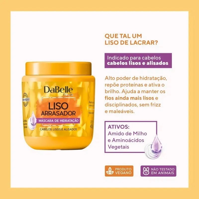 | DaBelle Máscara 400g Liso Arrasador este produto | R$ 22,90 | 12% | 4.8/5 | — |